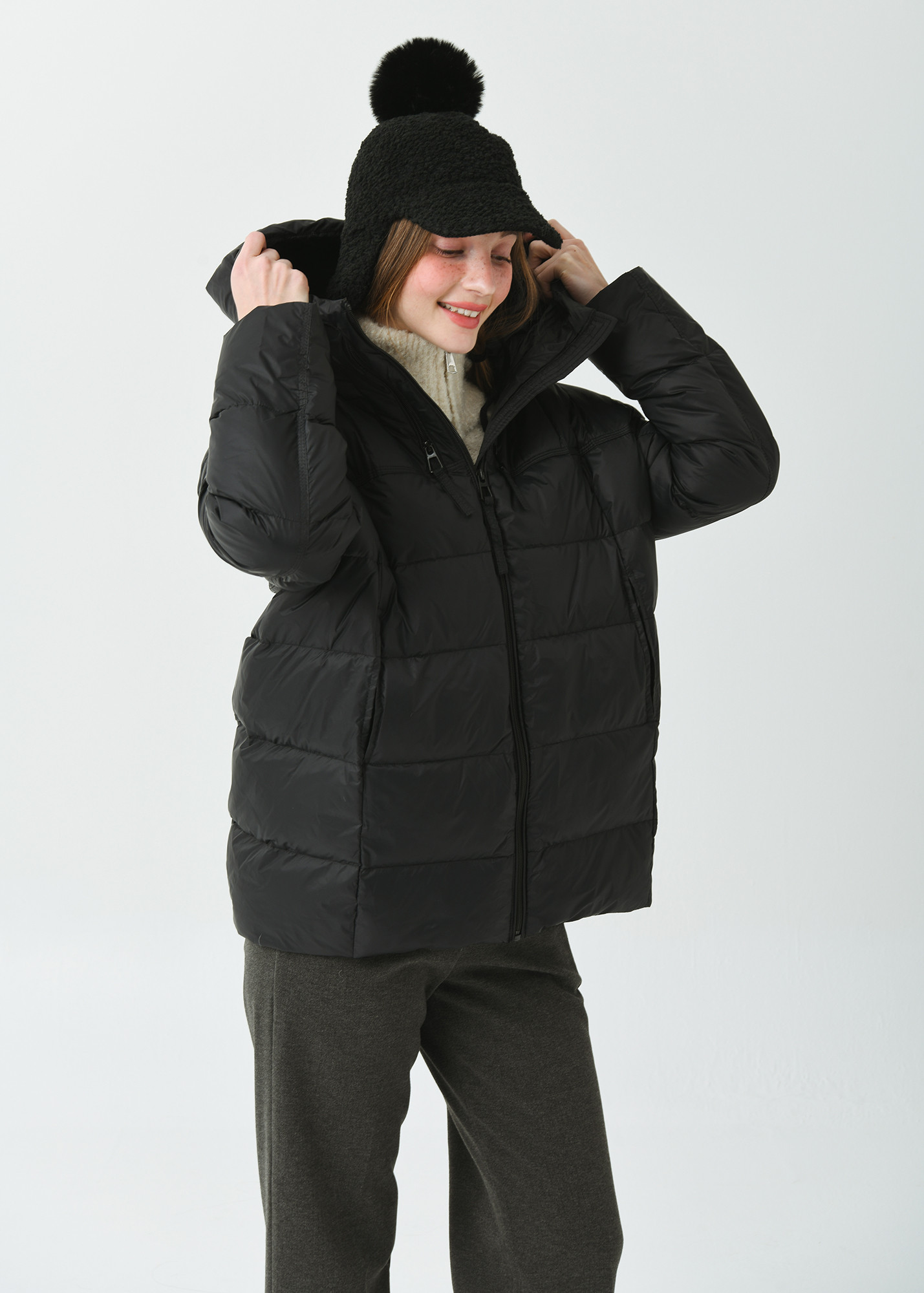 25FW 후드 아노락 경량 덕 다운 블랙 오버 힙 쟈켓