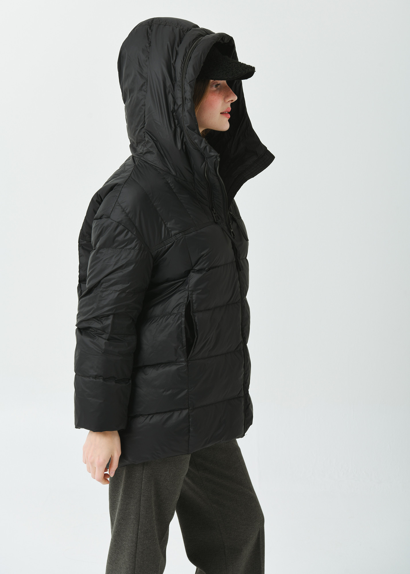 DETAIL:후드 폭 사이즈 확장이 가능한 지퍼작업이 포인트인 아노락형 부착형 후드
