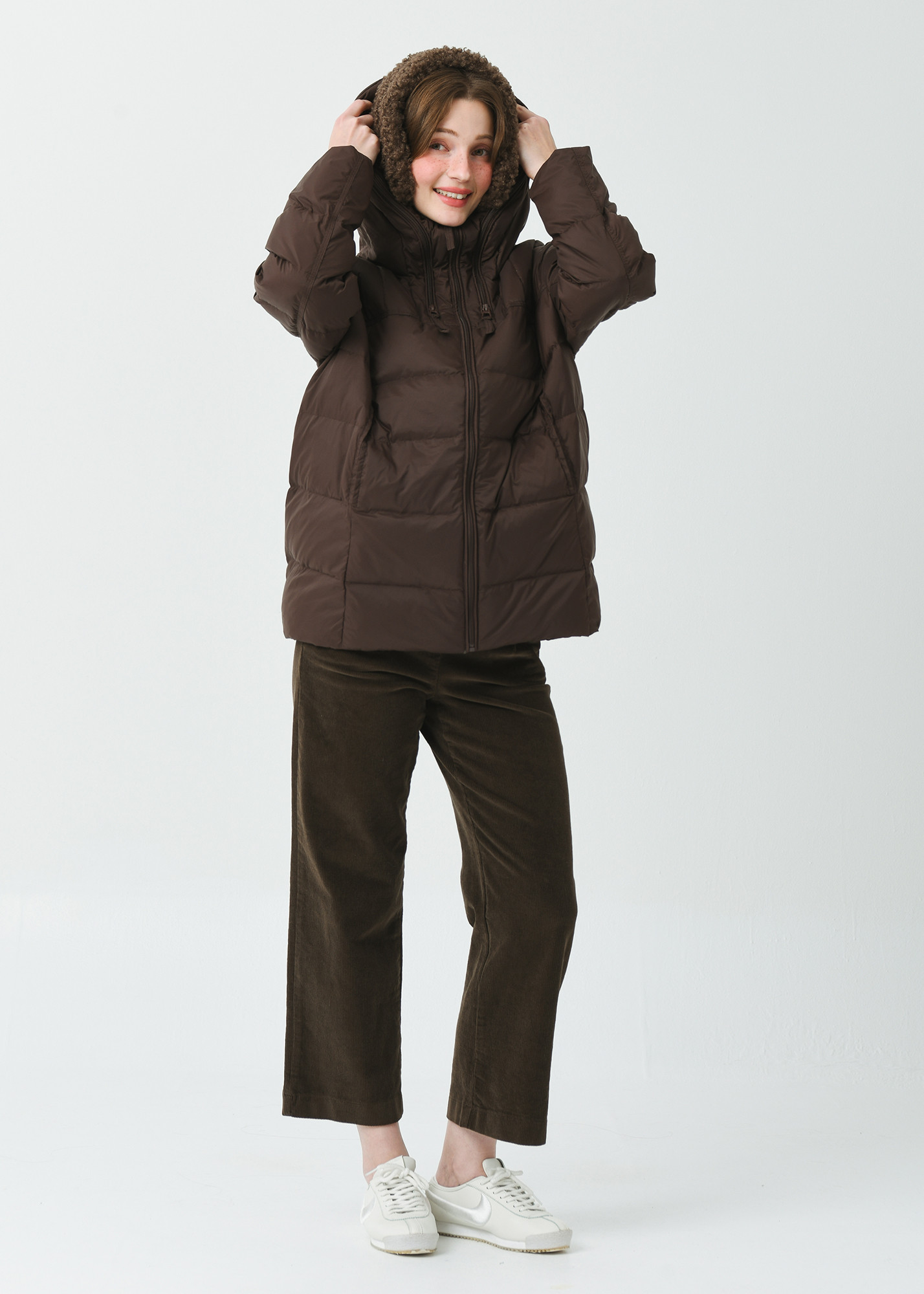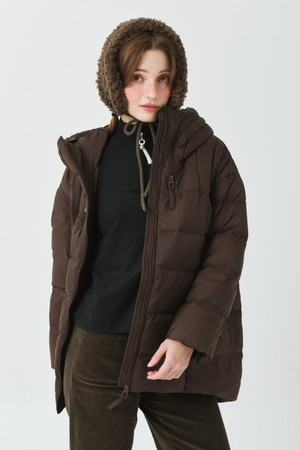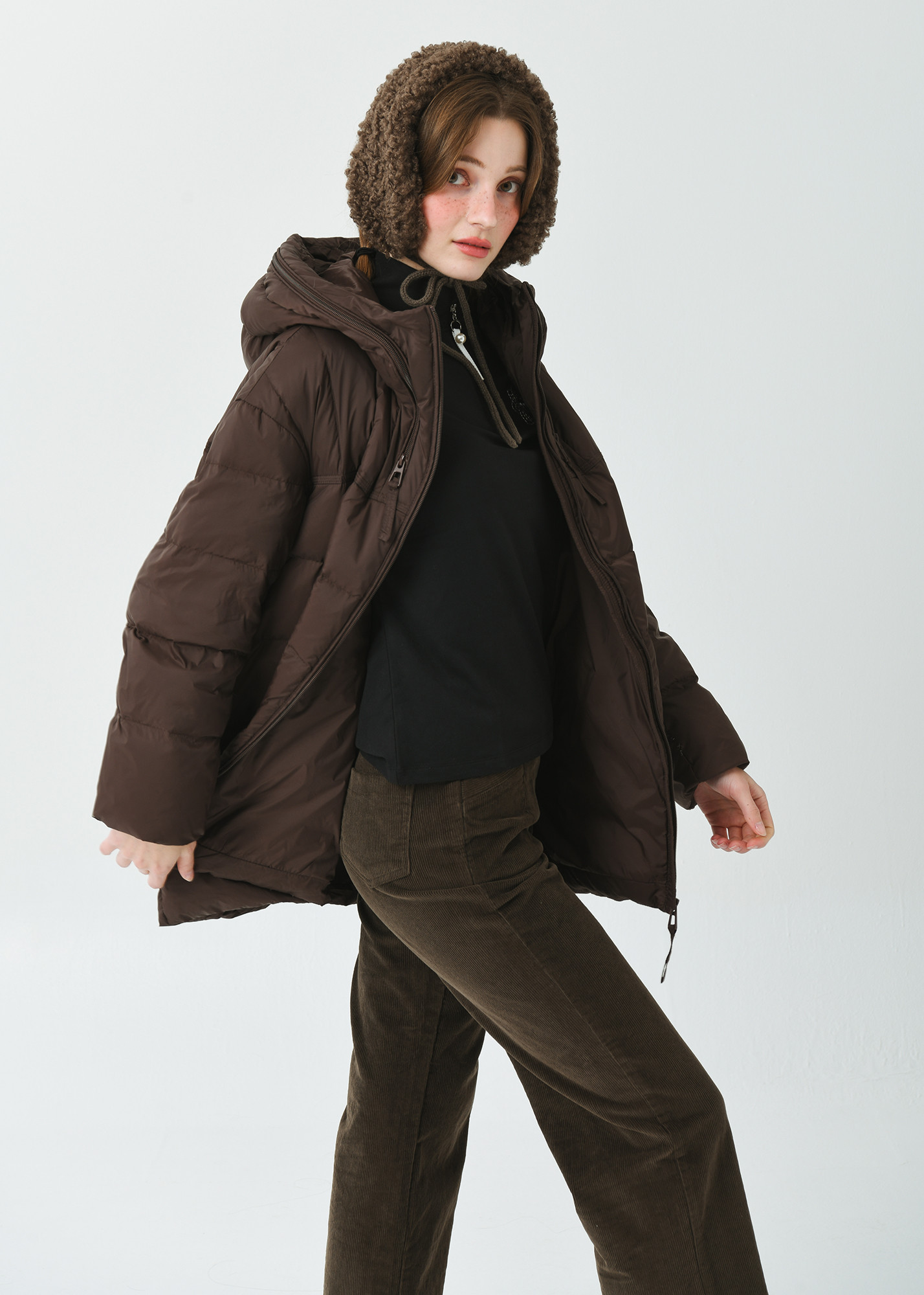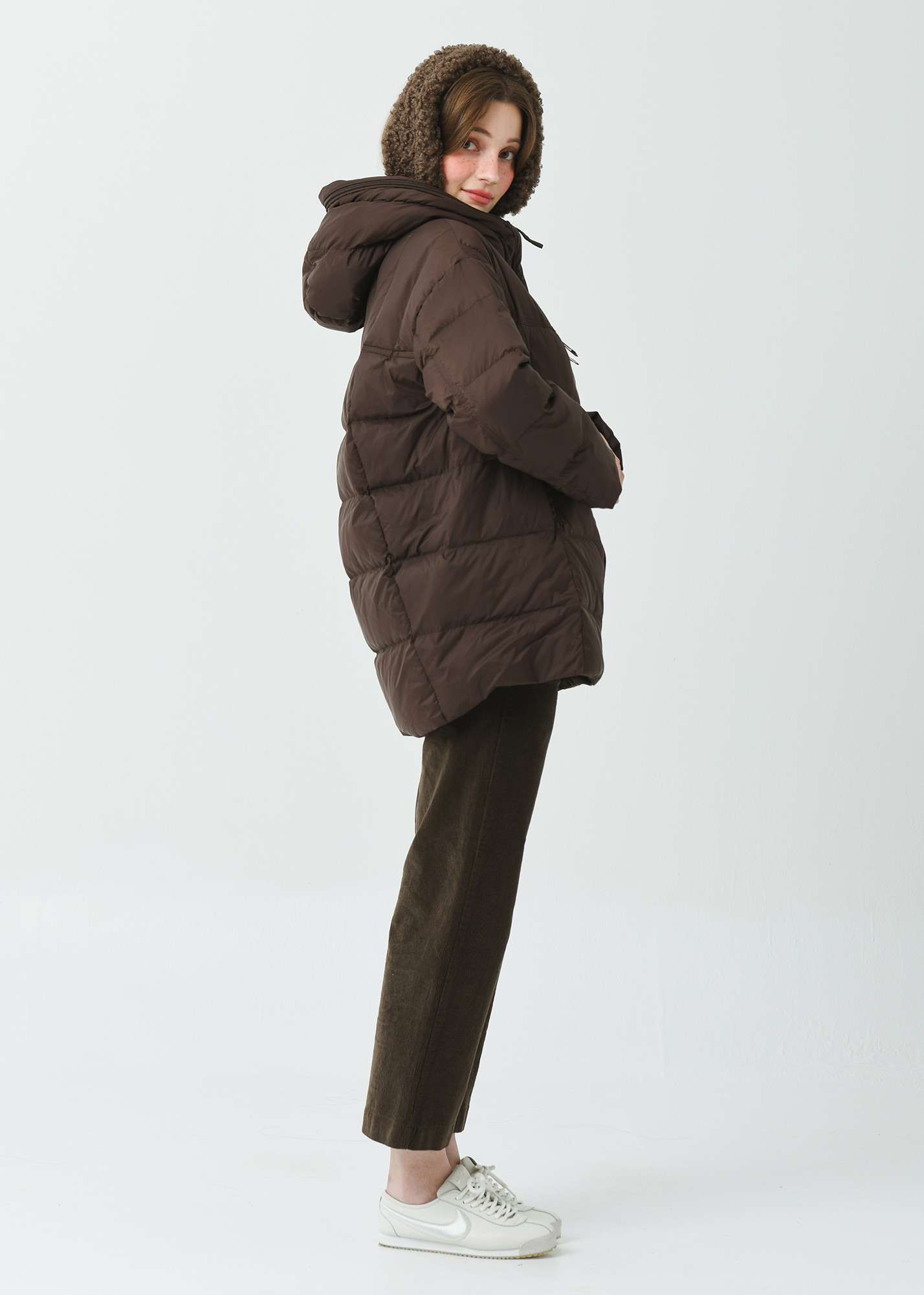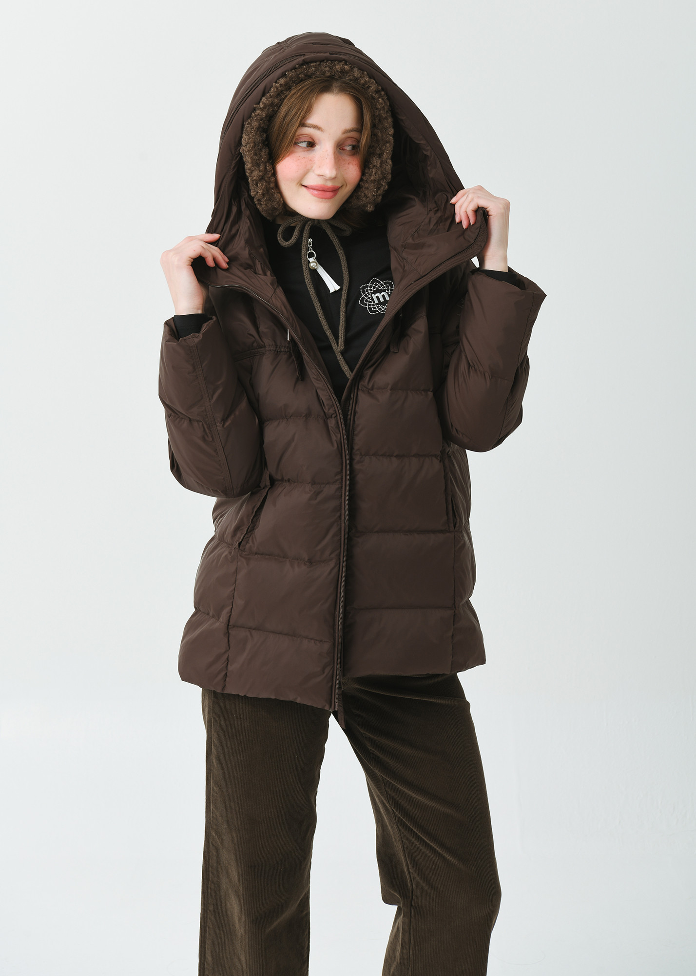 후드 아노락 경량 덕 다운 브라운 오버 힙 쟈켓