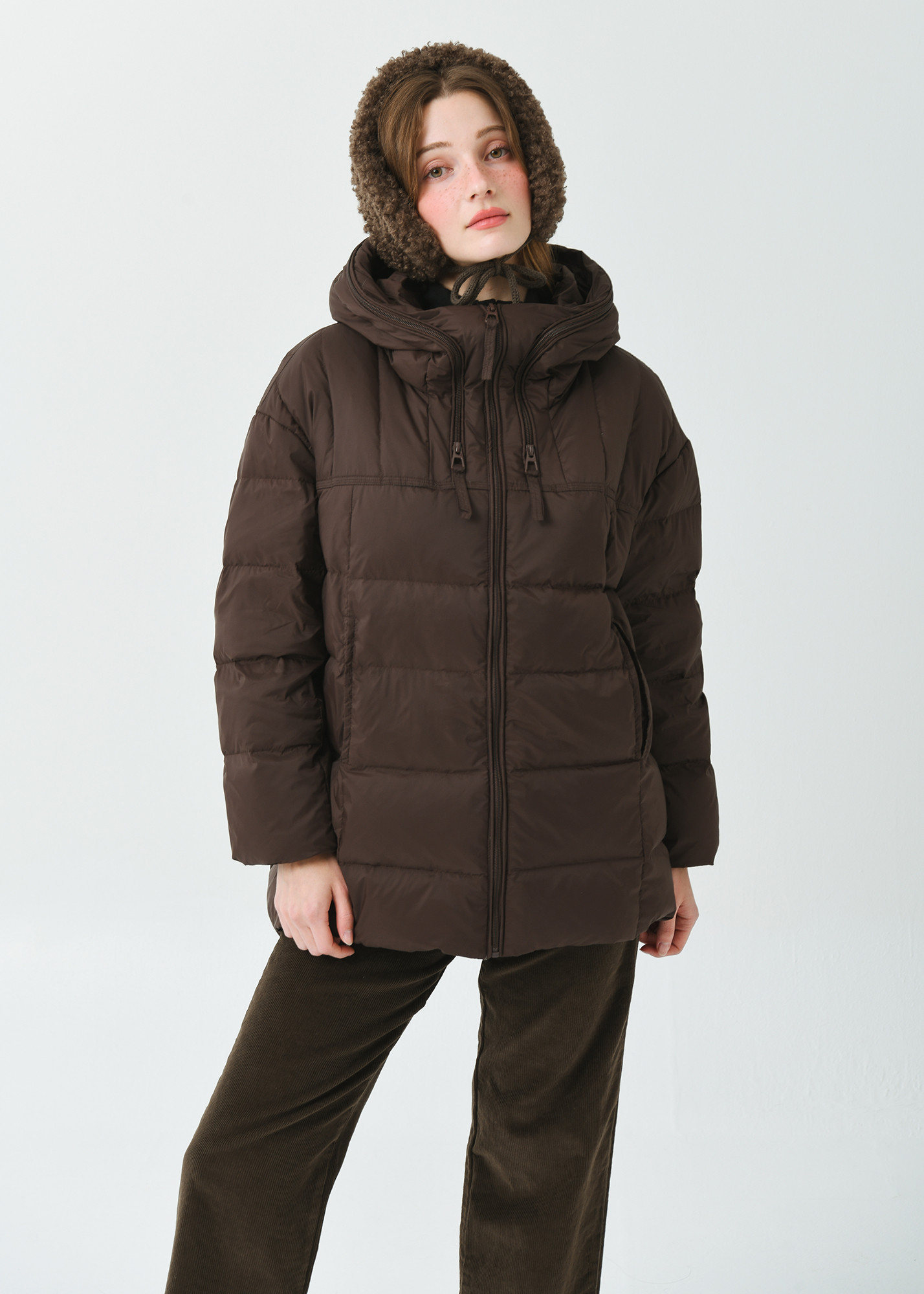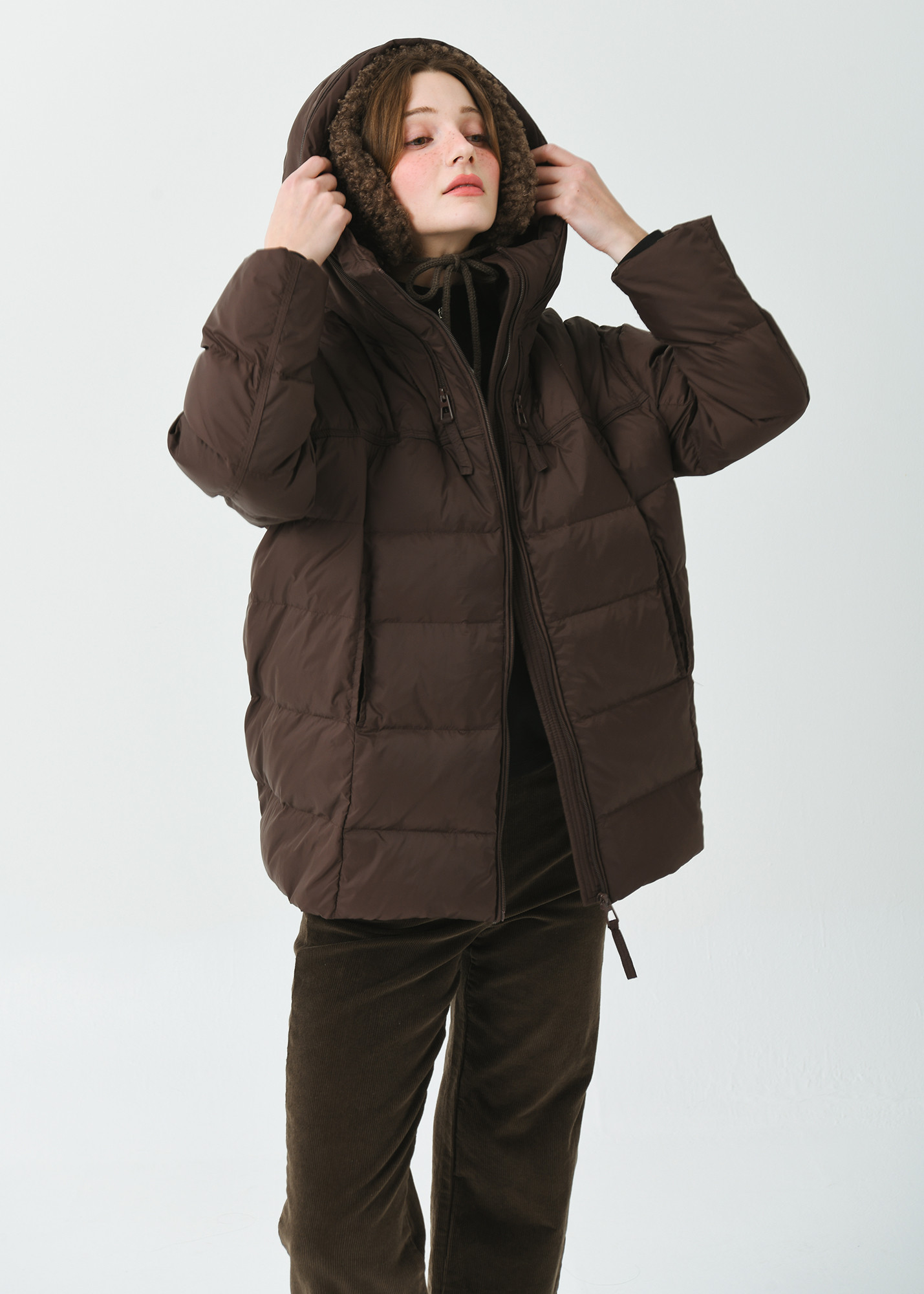 25FW 후드 아노락 경량 덕 다운 브라운 오버 힙 쟈켓
