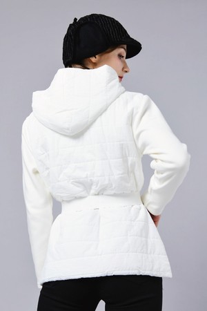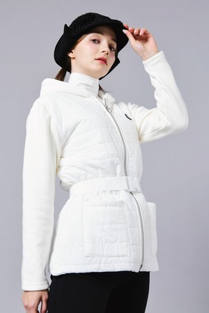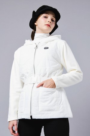 웰론 패딩 져지 패치 후드 집업 엘라스틱 벨트 화이트 쟈켓