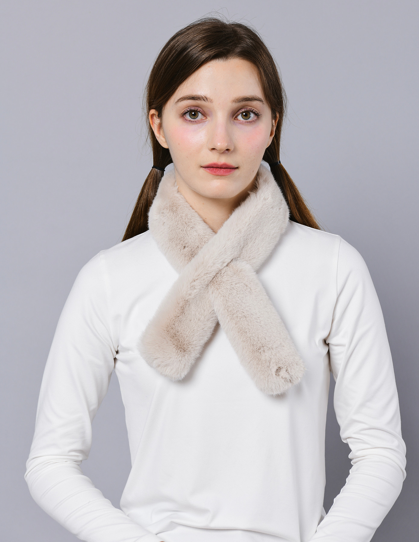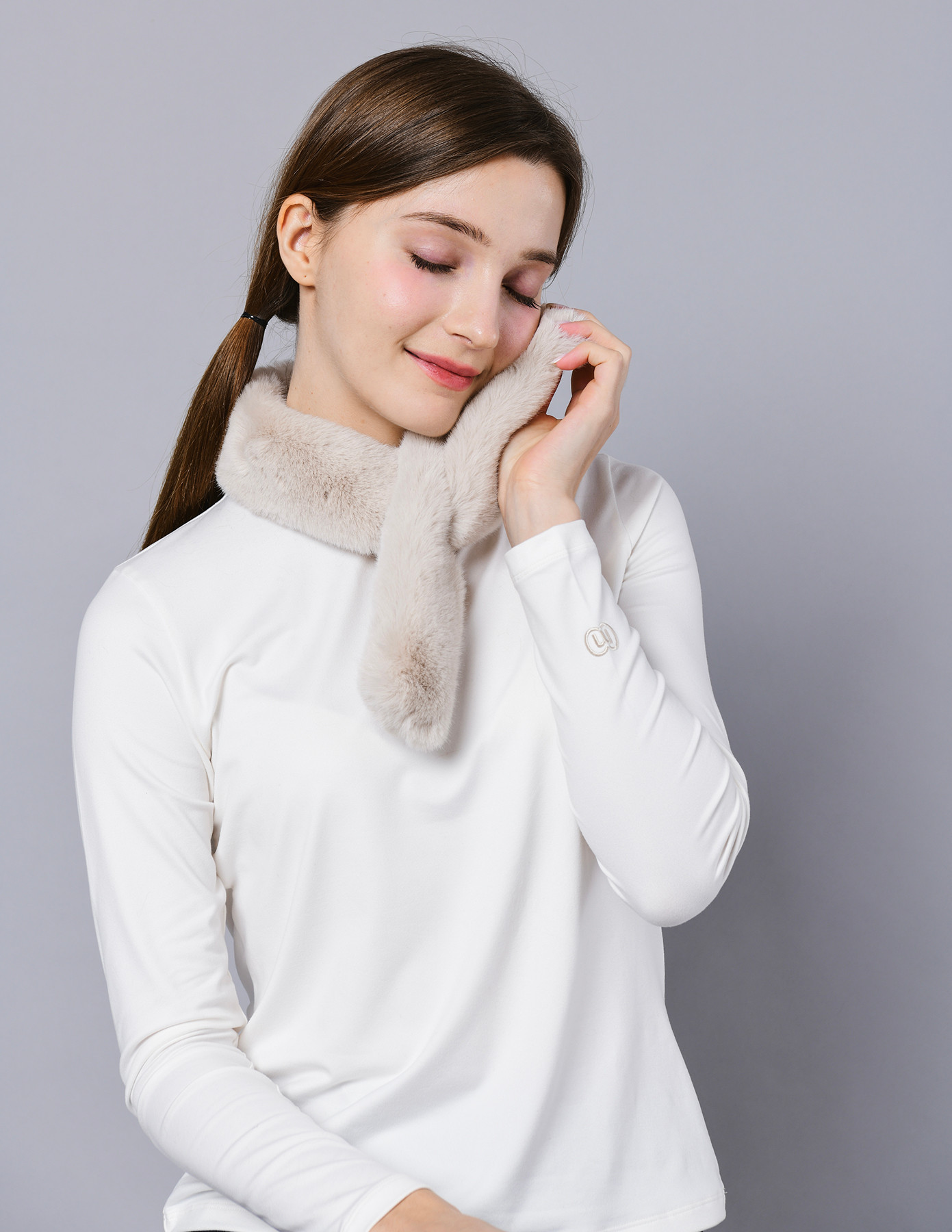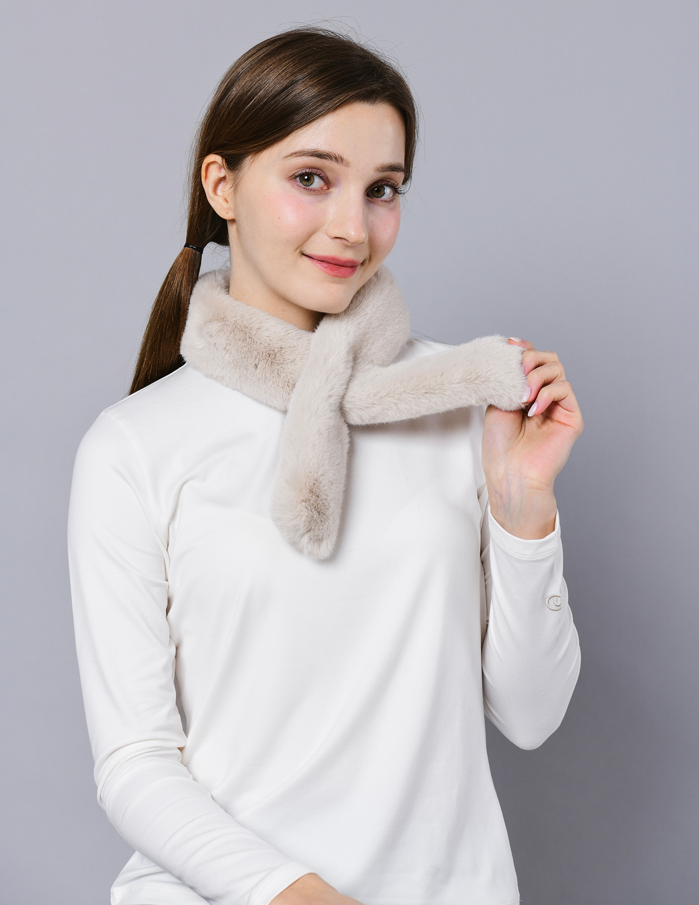 25FW 인조 퍼 크로스 인써트 라이트 모카 베이지 넥 워머
