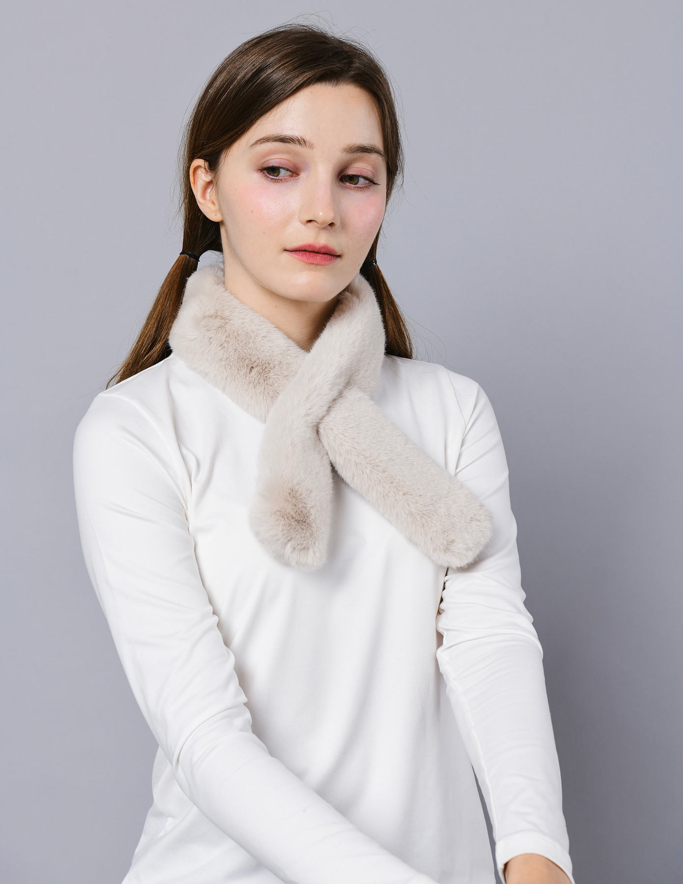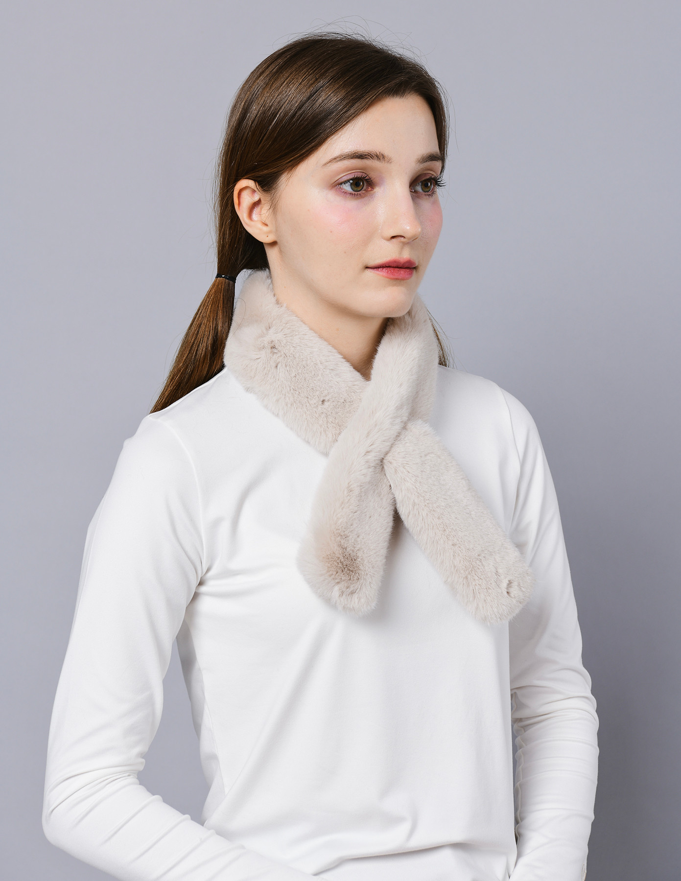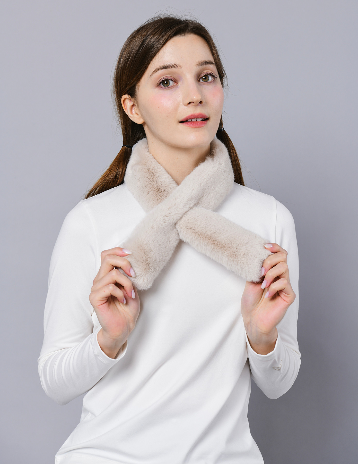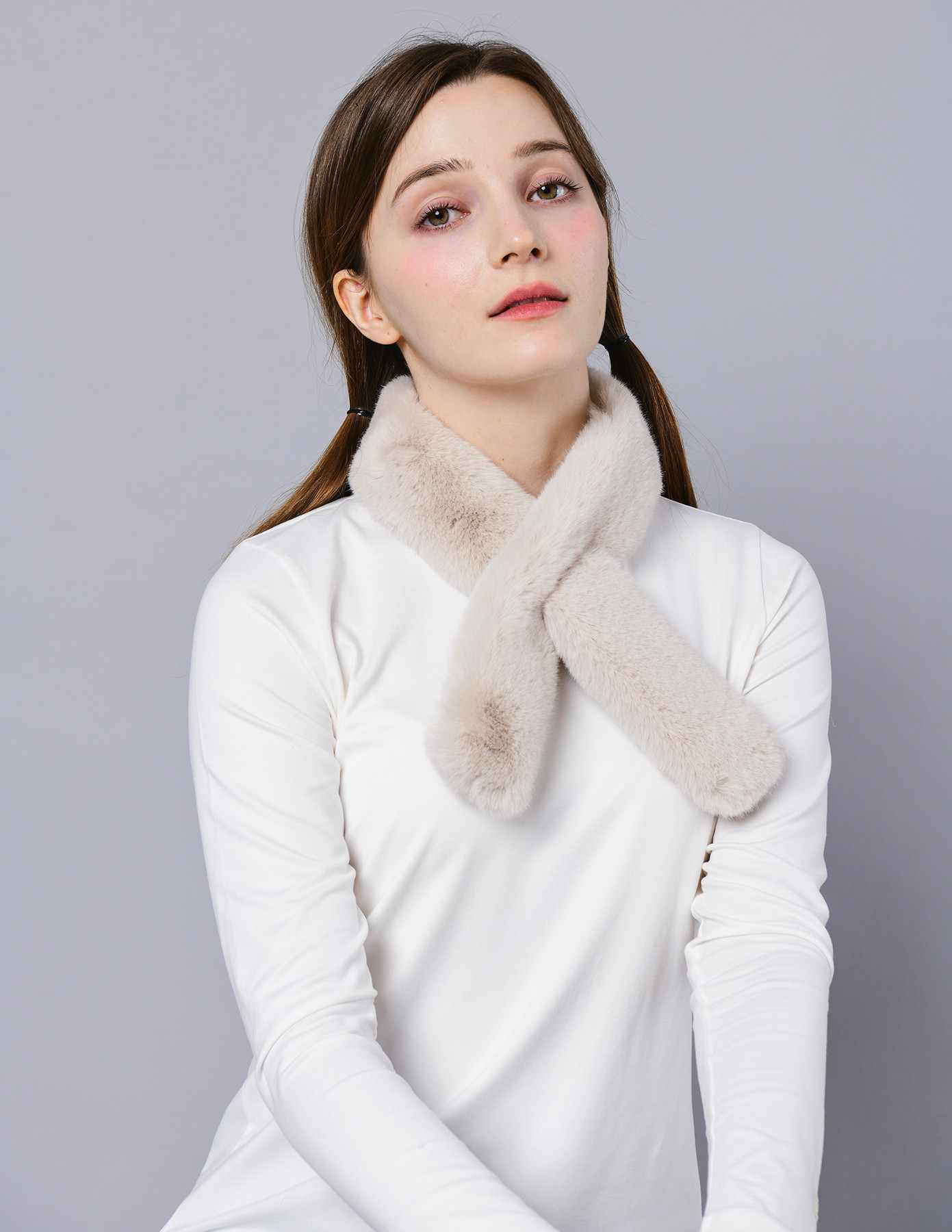 25FW 인조 퍼 크로스 인써트 라이트 모카 베이지 넥 워머