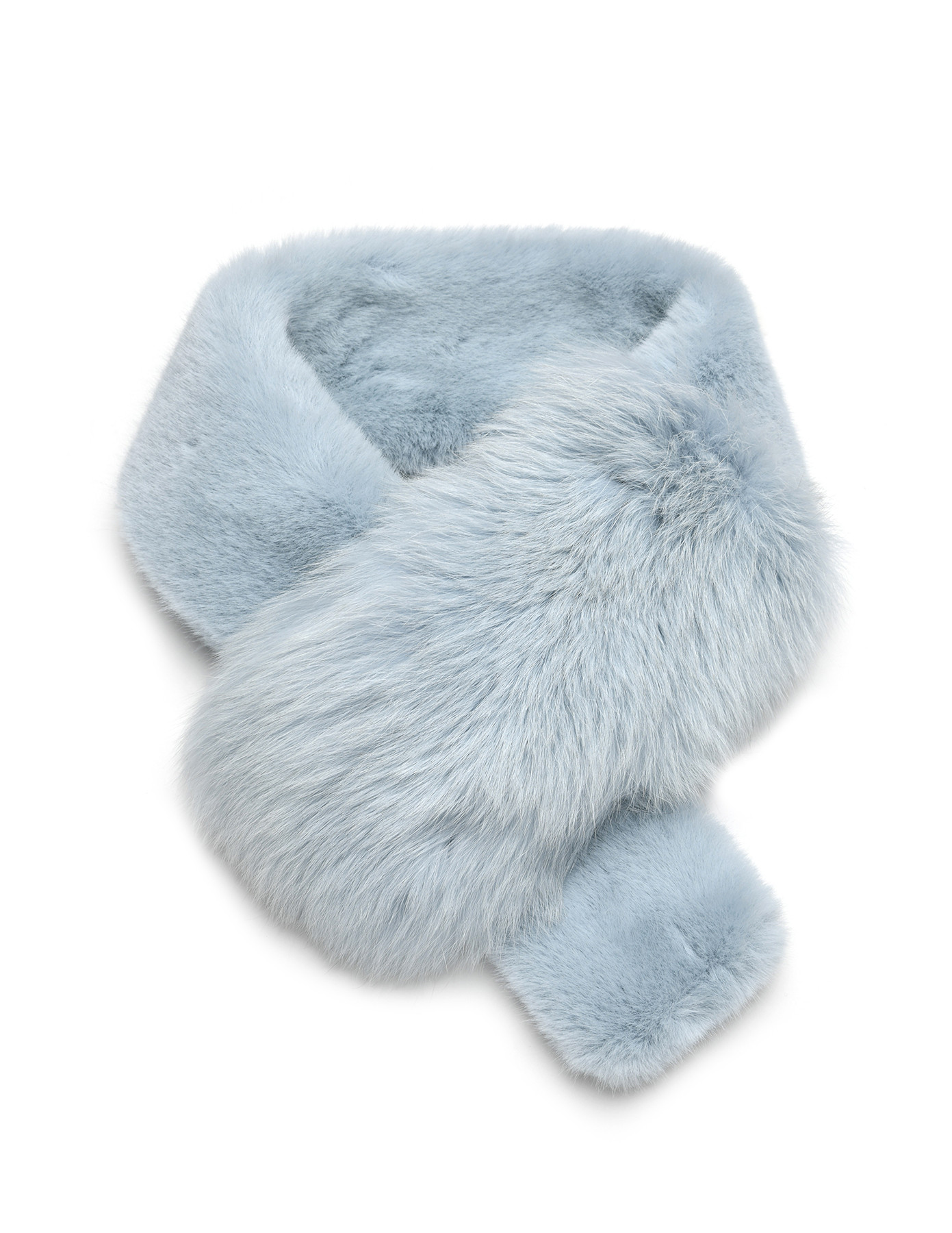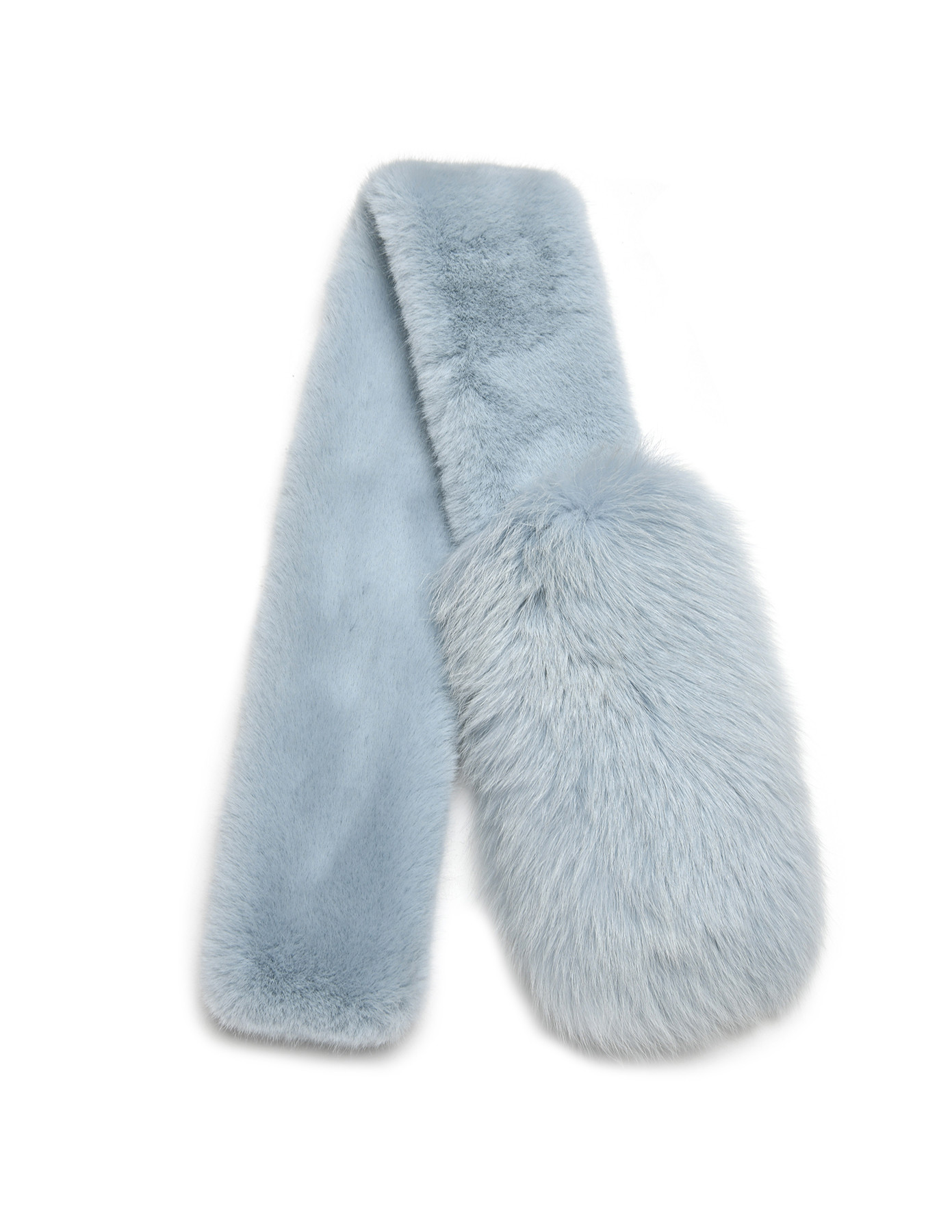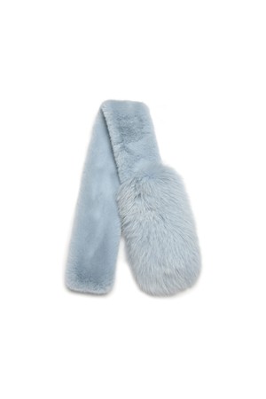 25FW 천연 폭스 앤 퍼 패치 소프트 블루 넥 워머