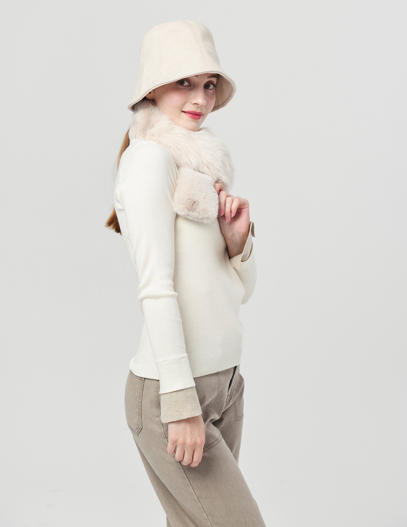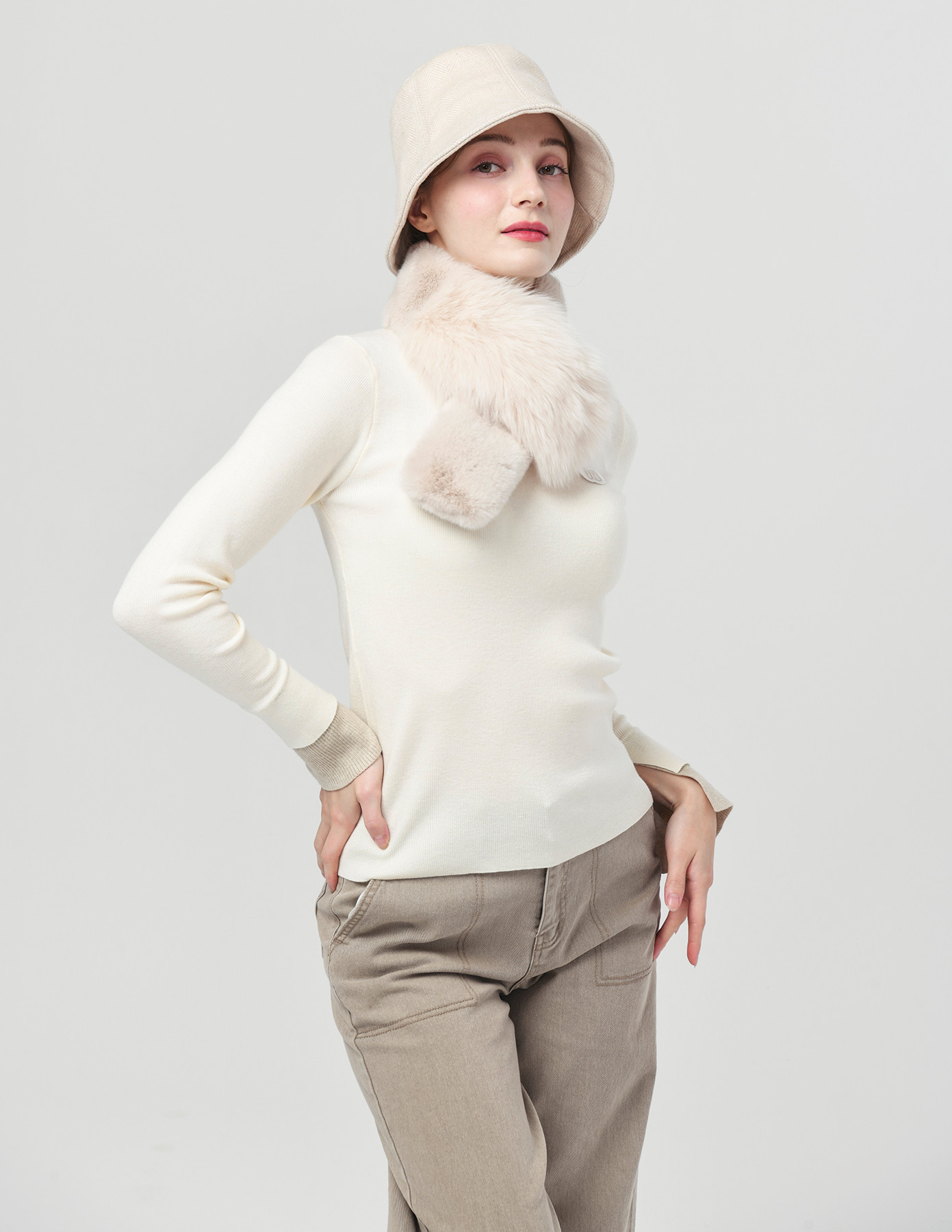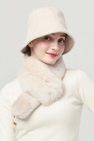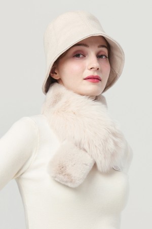 25FW 천연 폭스 앤 퍼 패치 소프트 오트밀 베이지 넥 워머