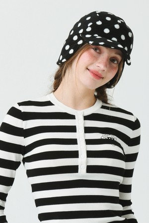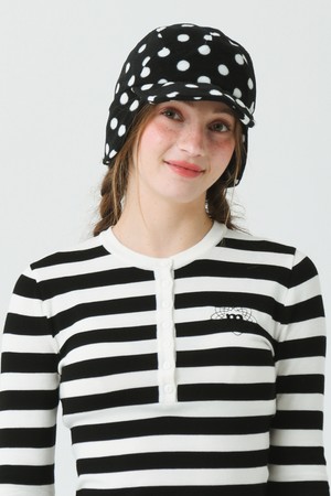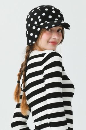 25W 소프트 플리스 사이즈 조리개 도트 프린트 블랙 귀달이 캡
