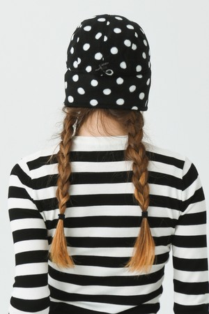 소프트 플리스 사이즈 조리개 도트 프린트 블랙 귀달이 캡