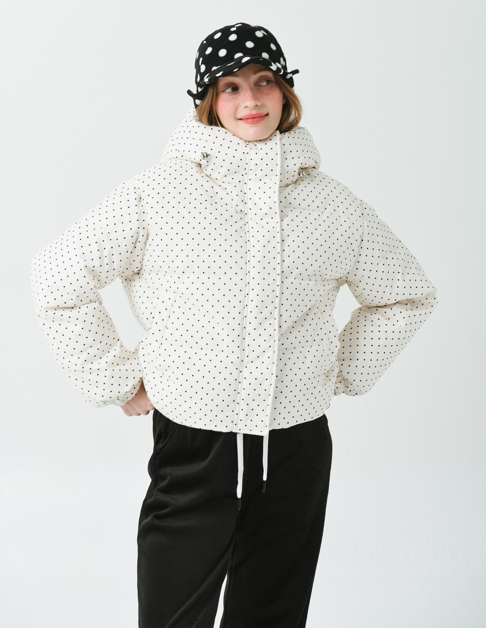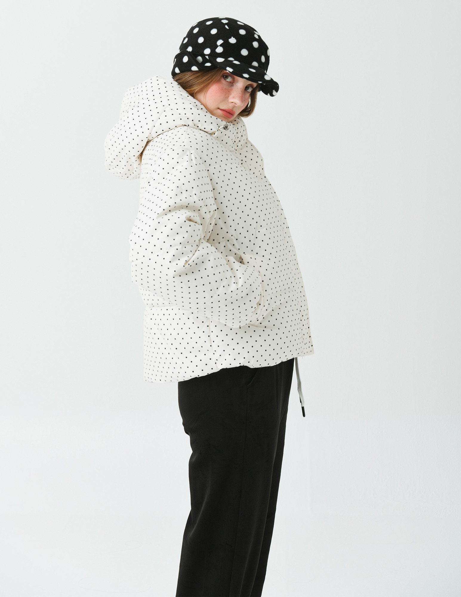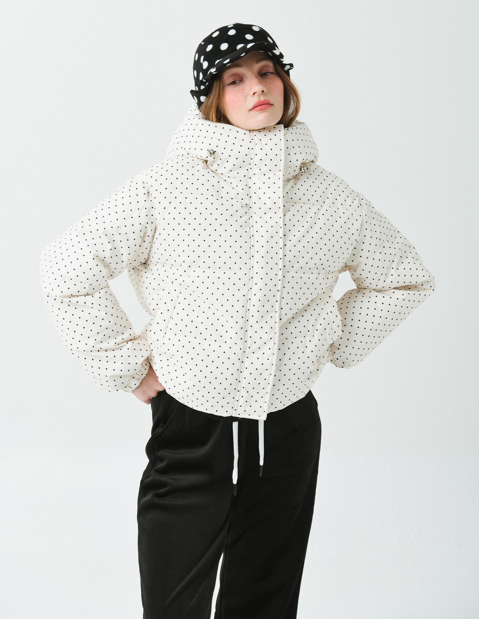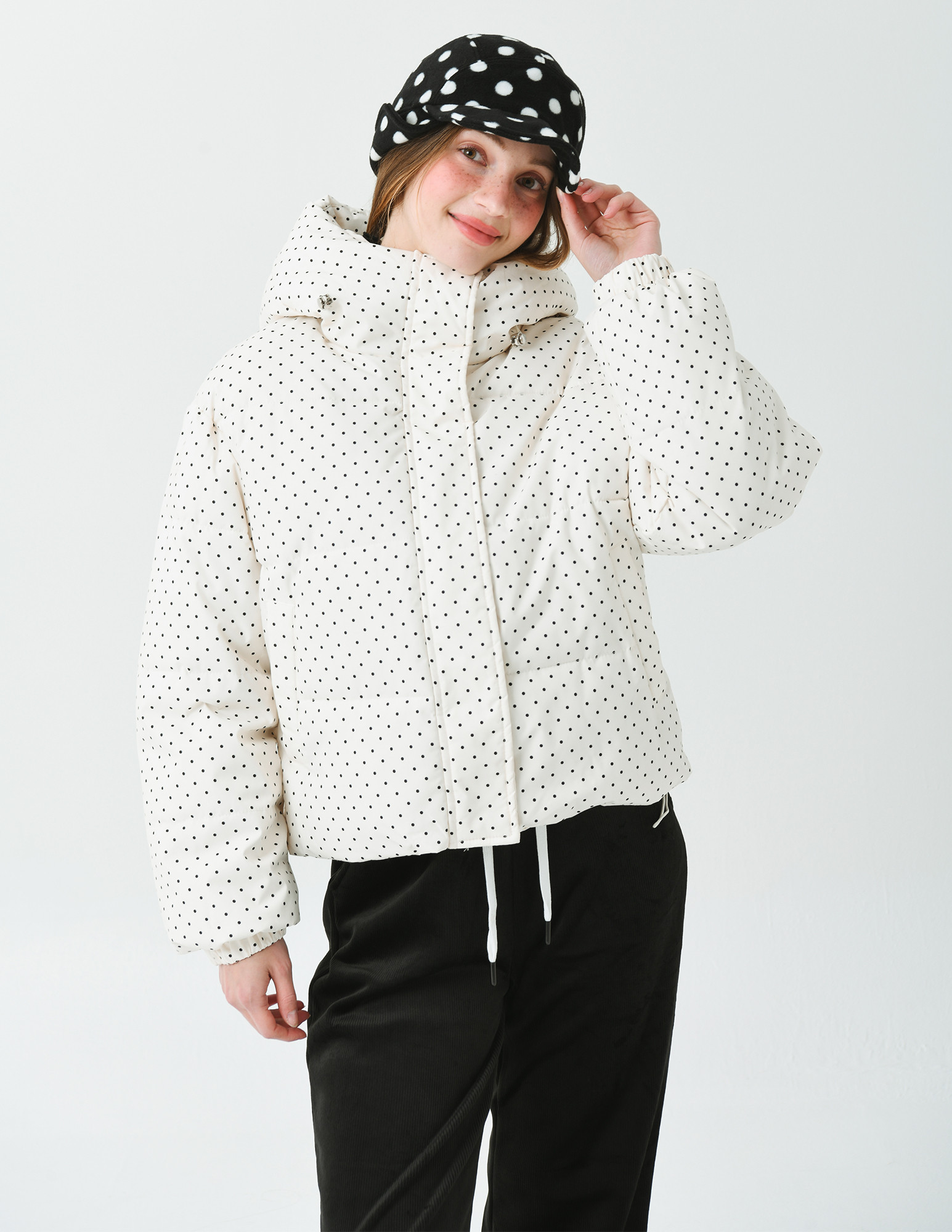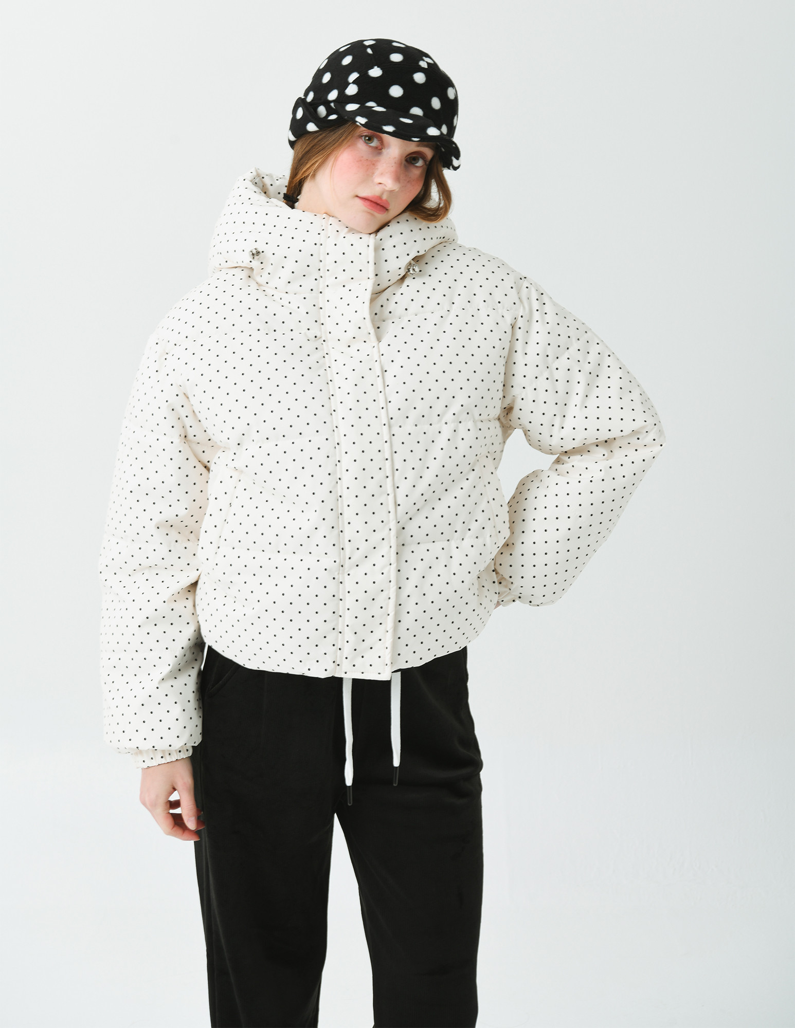 클래식하면서 귀여운 느낌의 도트 프린트가 캐쥬얼하면서 여성스러운 이미지를