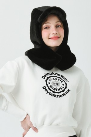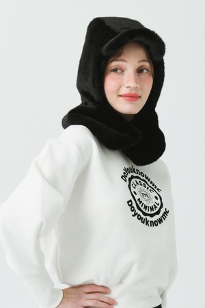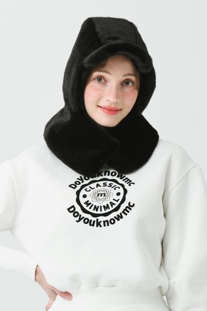 25FW 인조 퍼 후드 앤 넥 워머 마그네틱 오프닝 블랙 워머 캡