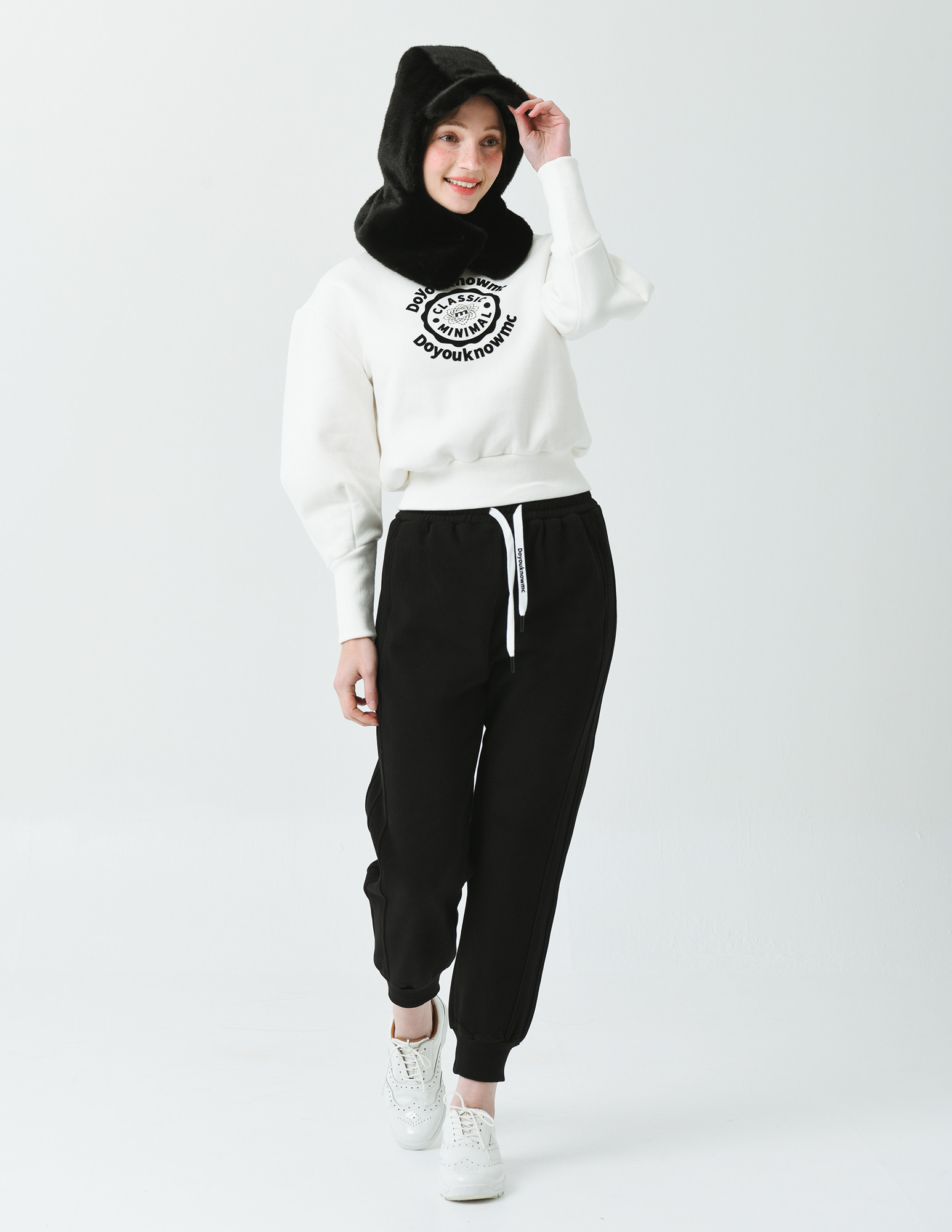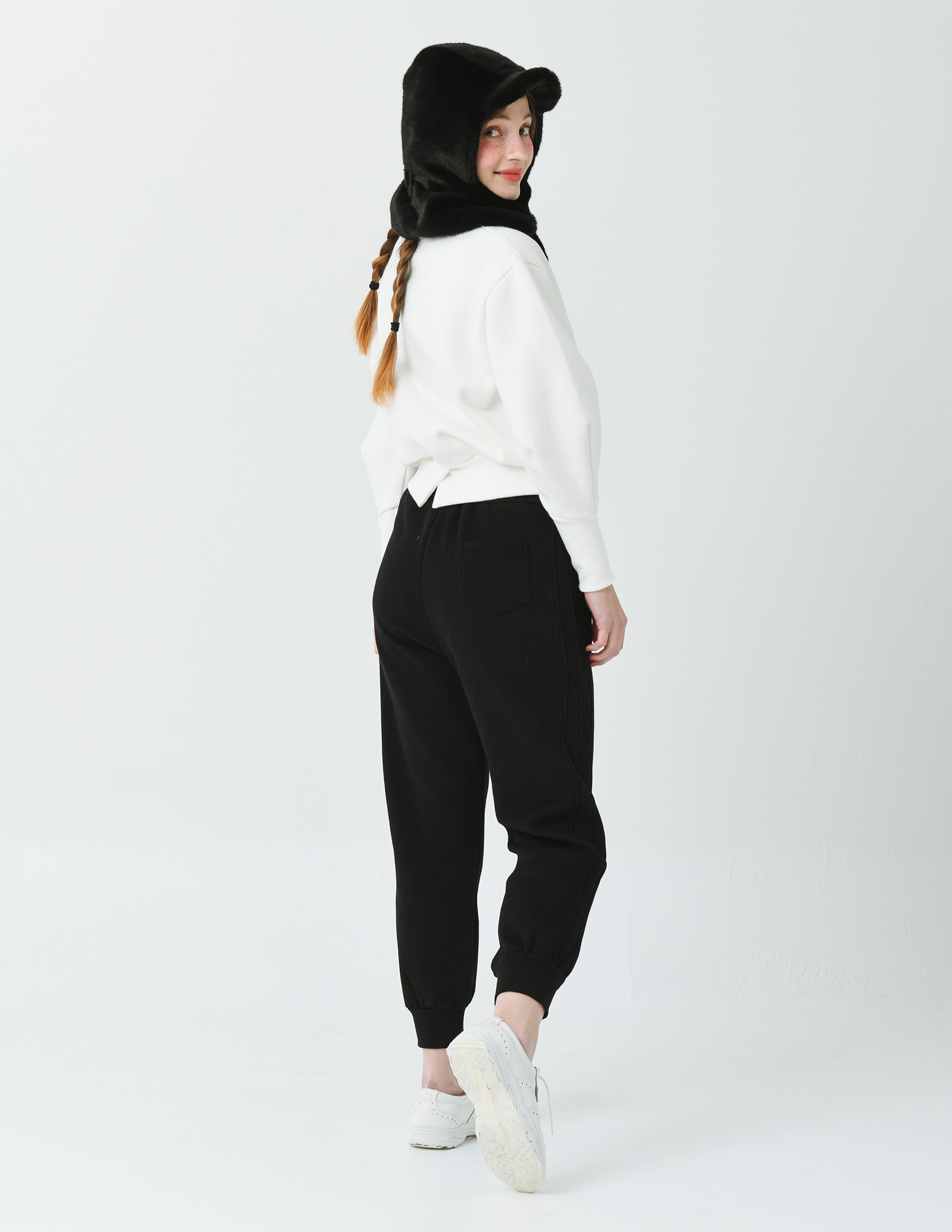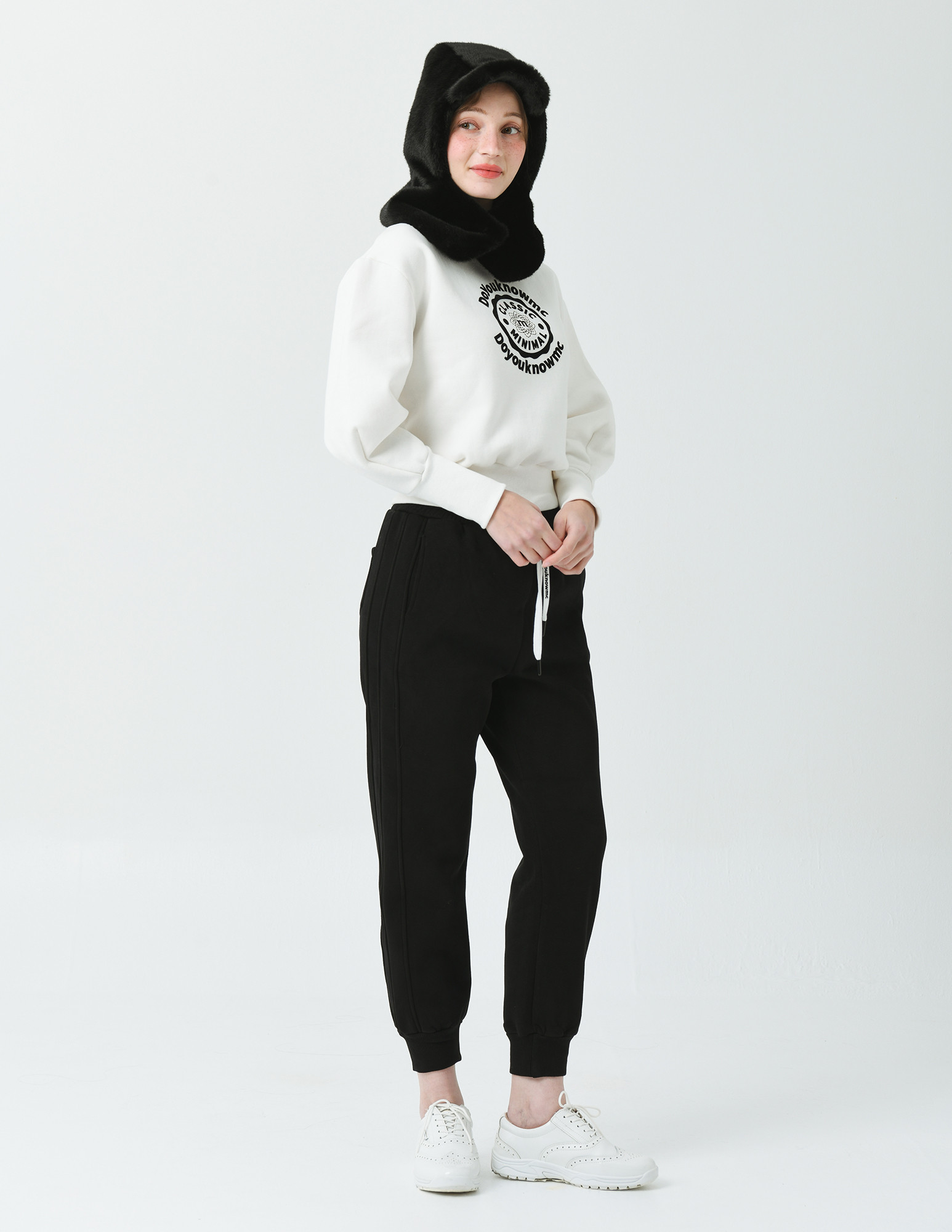 DETAIL:인조 퍼로 작업된 넥 워머가 부착된 방한용 좁은 챙의