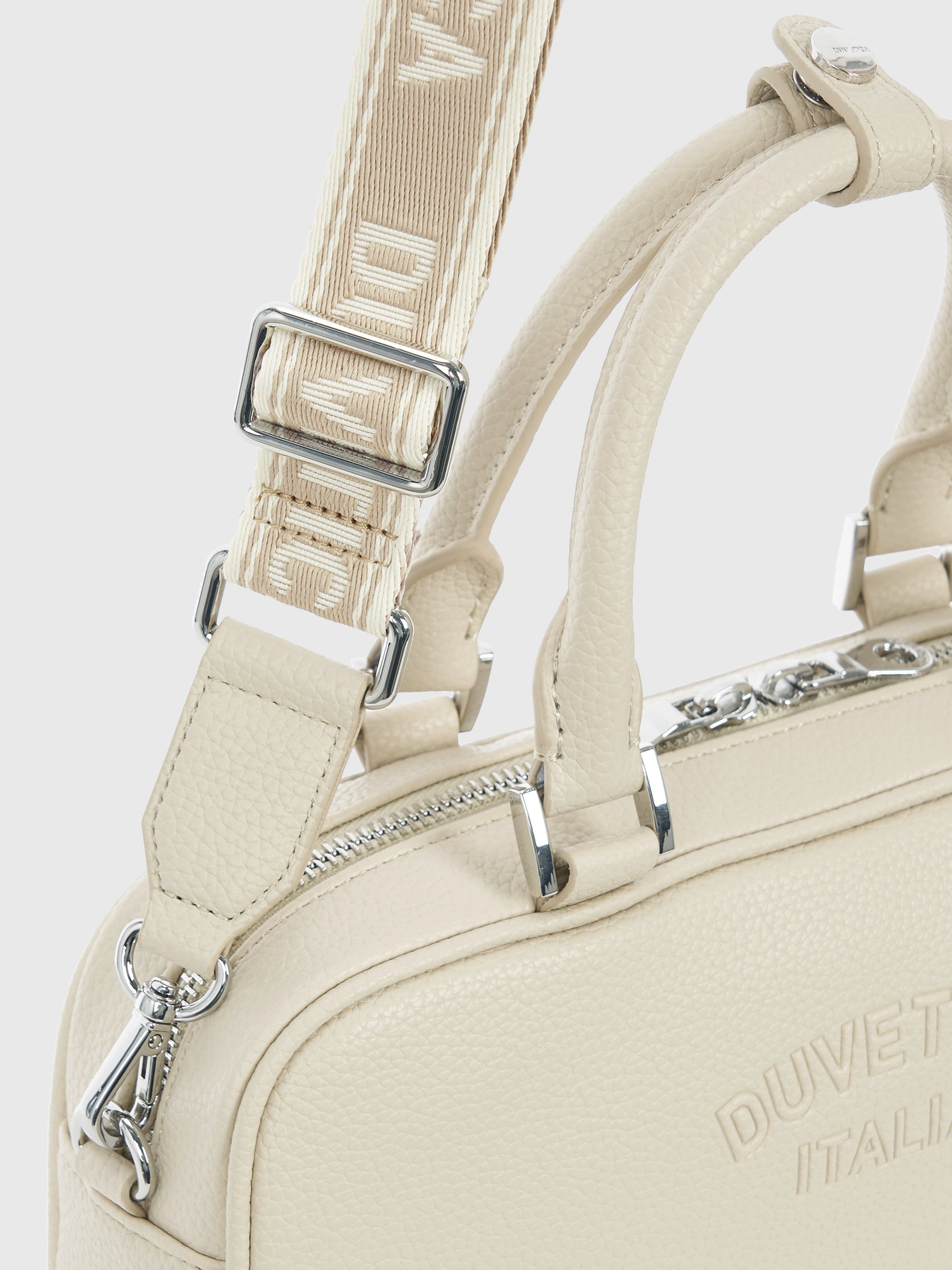 - 탈부착 가능한 웨빙 스트랩과 짧은 손잡이 구성으로 숄더/크로스 투웨이 연출 가능