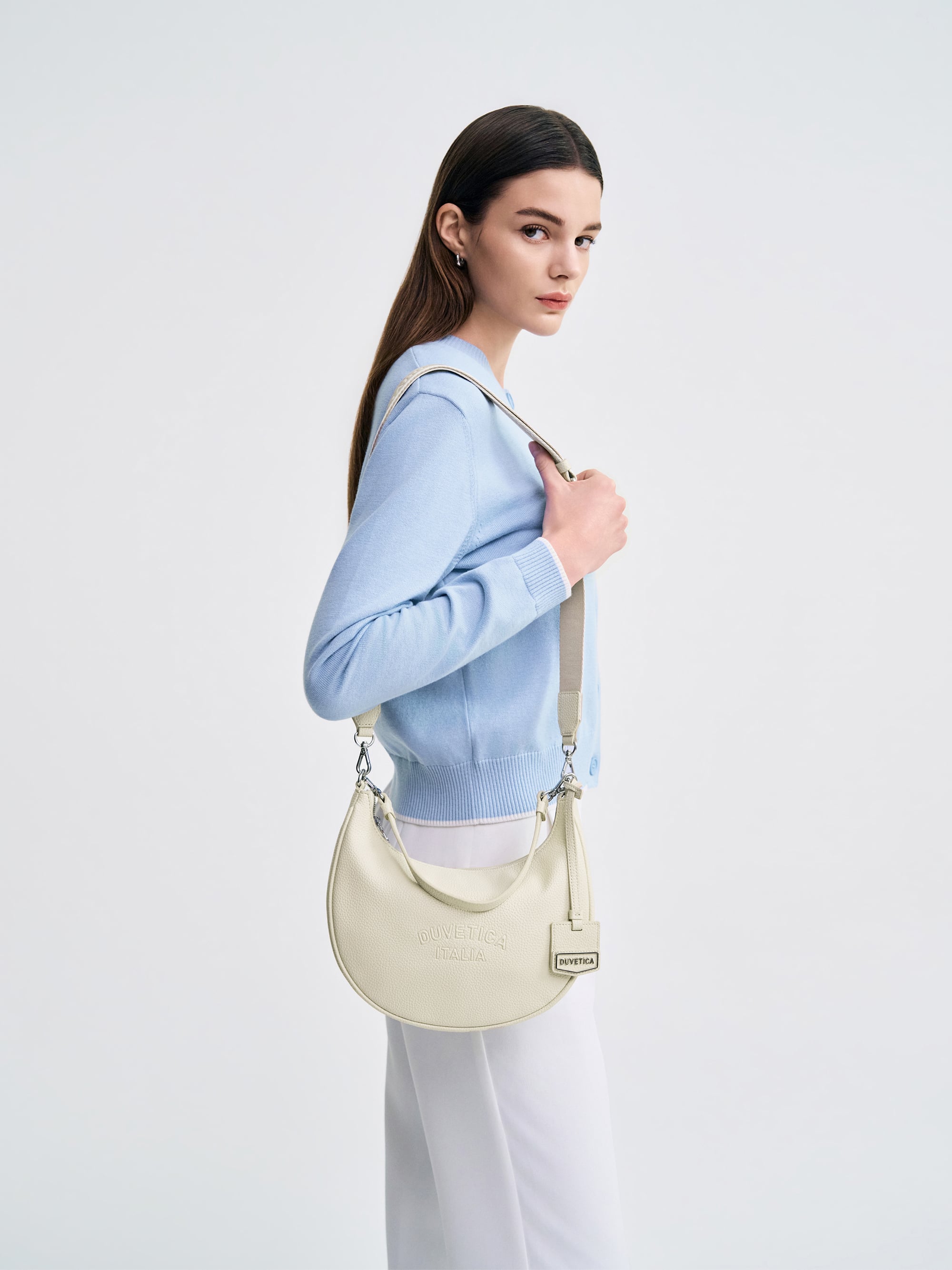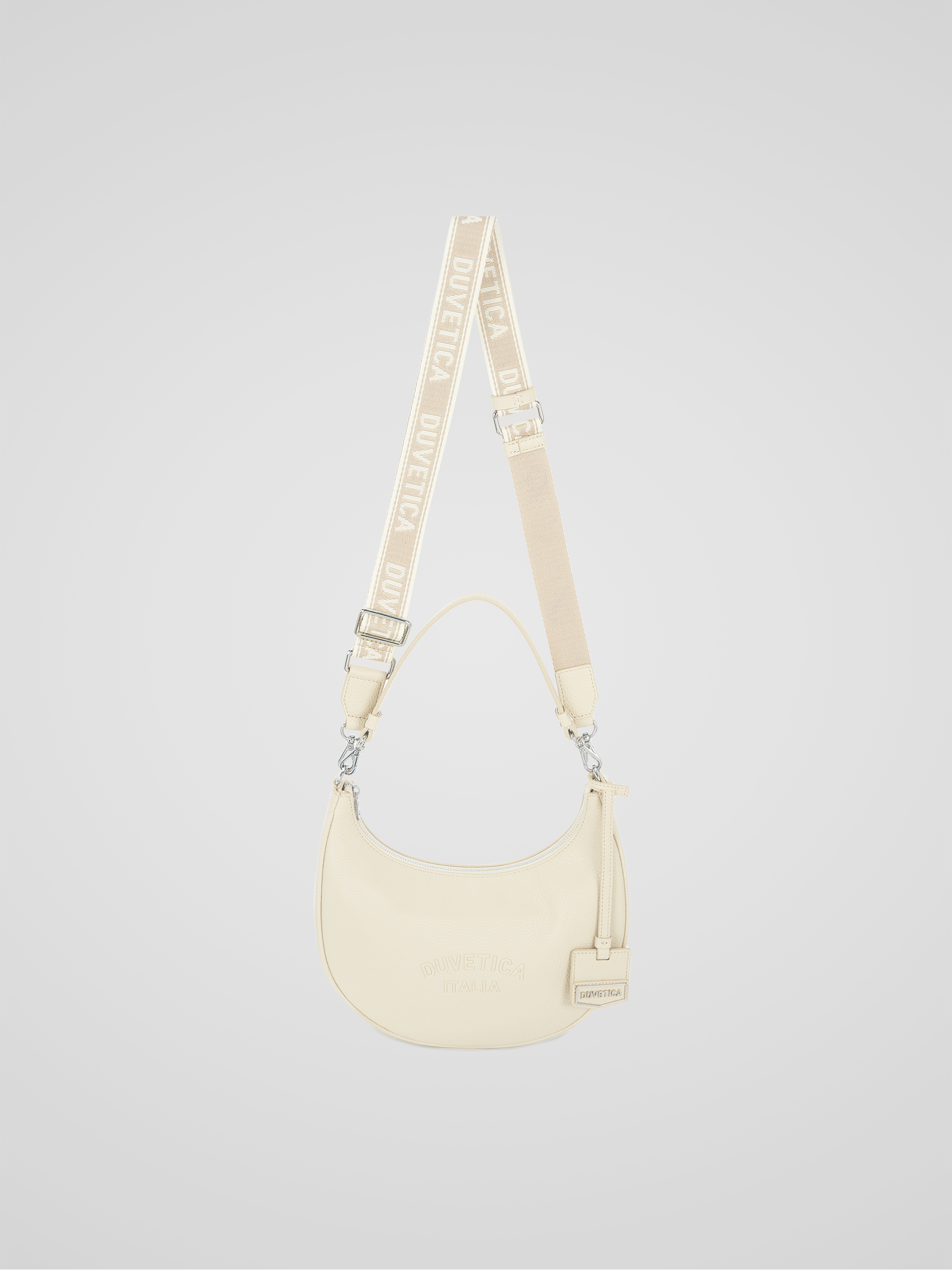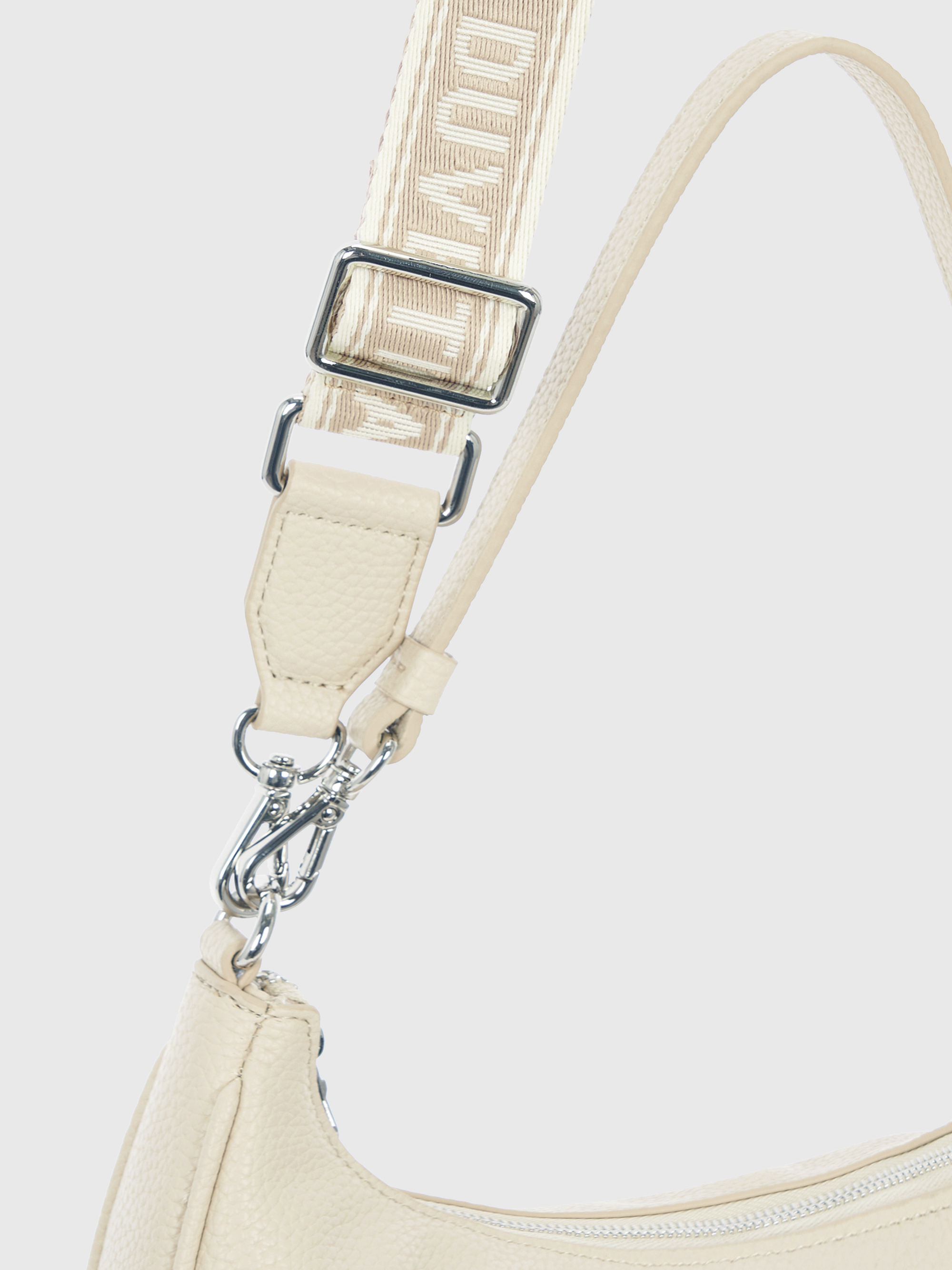 -웨빙 로고 스트랩과 메탈 장식으로 포인트를 준 호보백