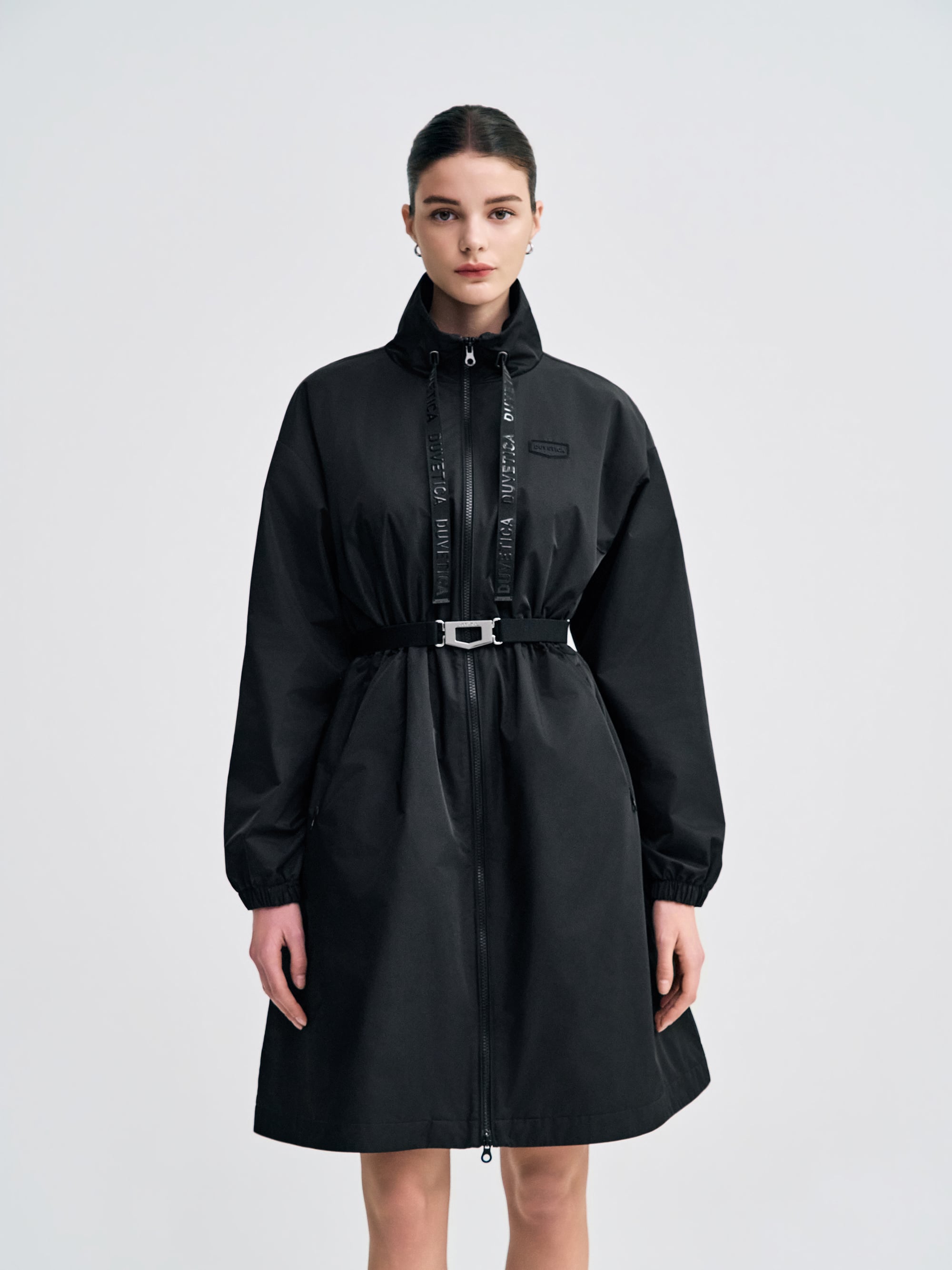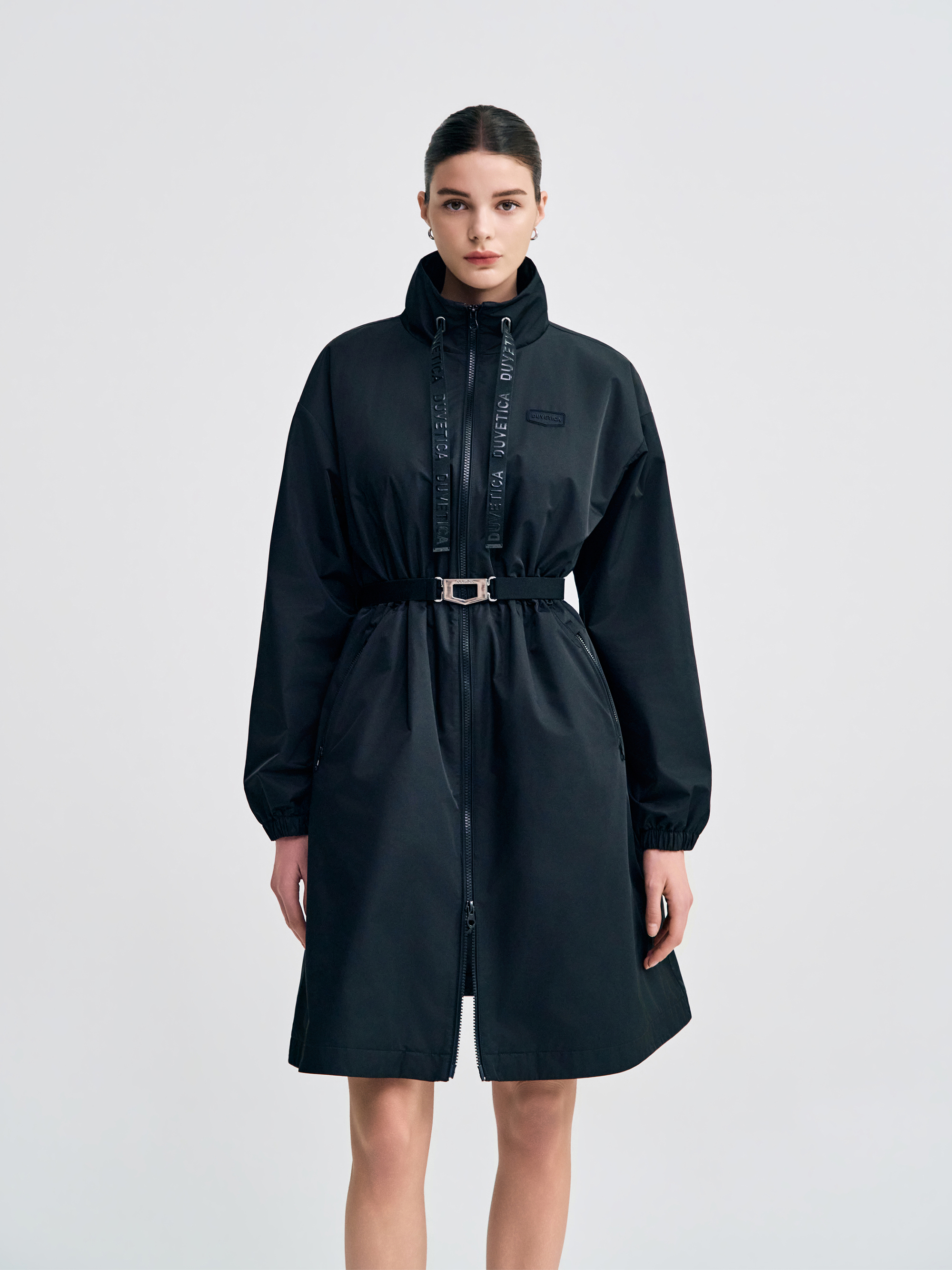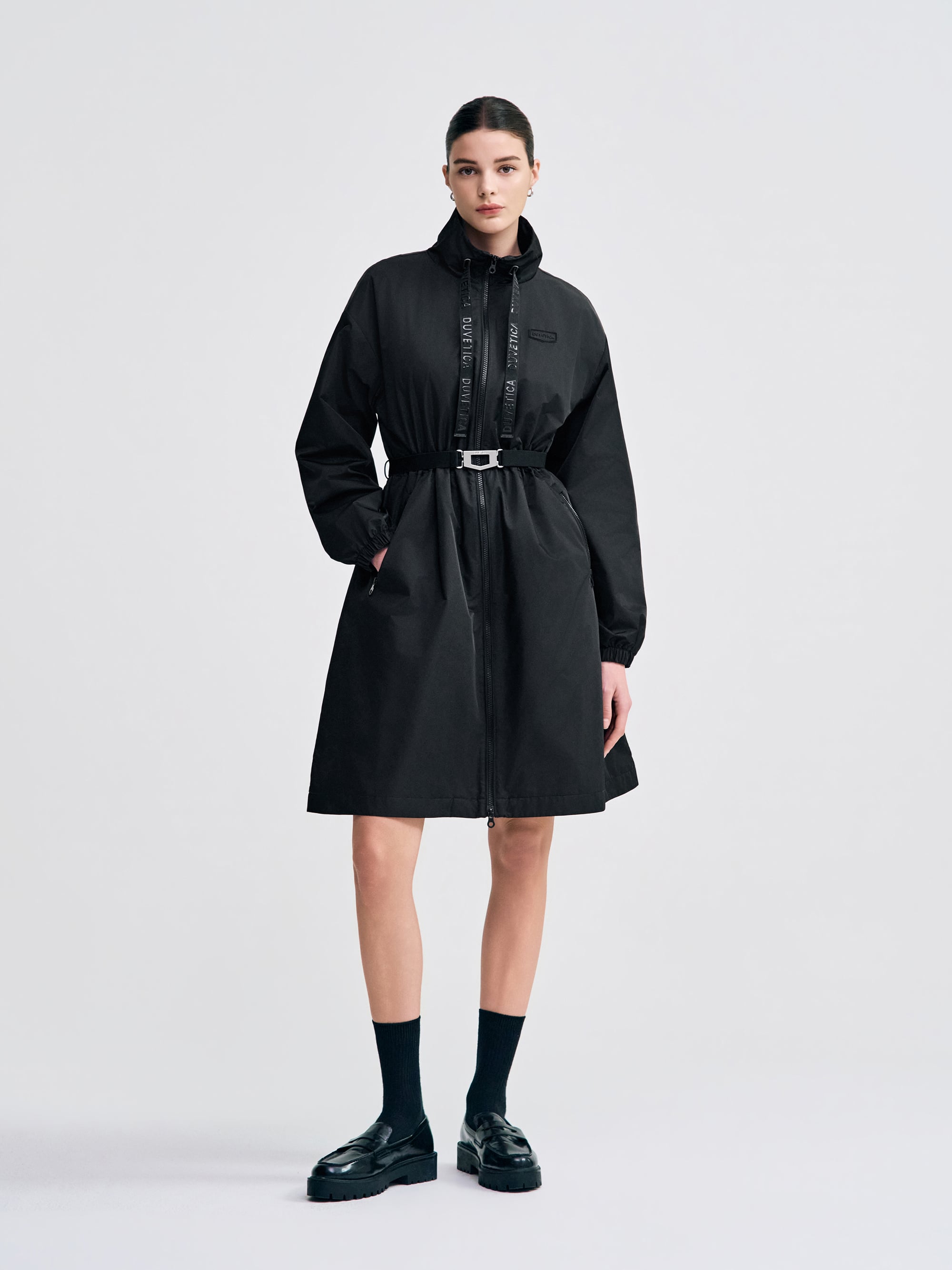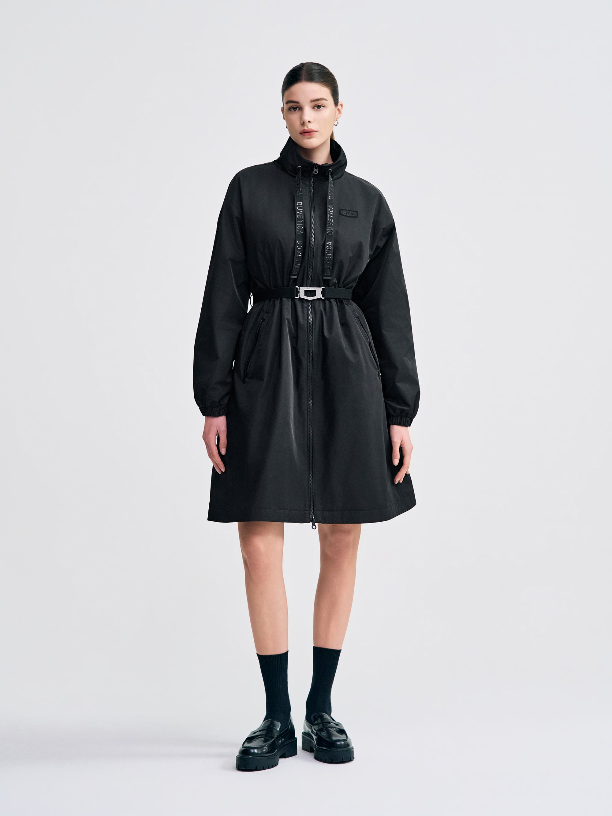 - 옵션 벨트의 듀베티카 심볼 오각 메탈 버클을 통해 여성스러운 핏&플레어 실루엣 연출 가능