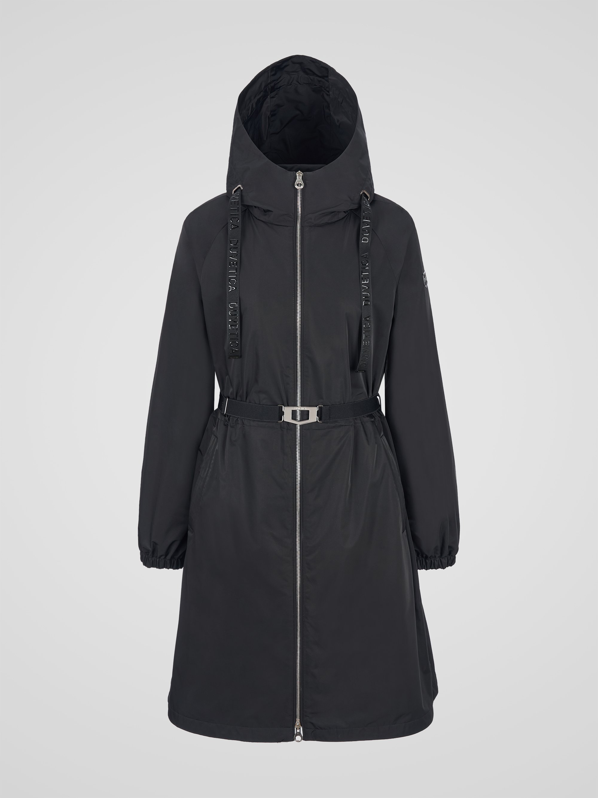 - 여성스러운 코트 외관, 데일리룩 및 포멀한 룩에 적합. 금속 듀베티카 심볼 버클 허리벨트로 실루엣 조절 가능