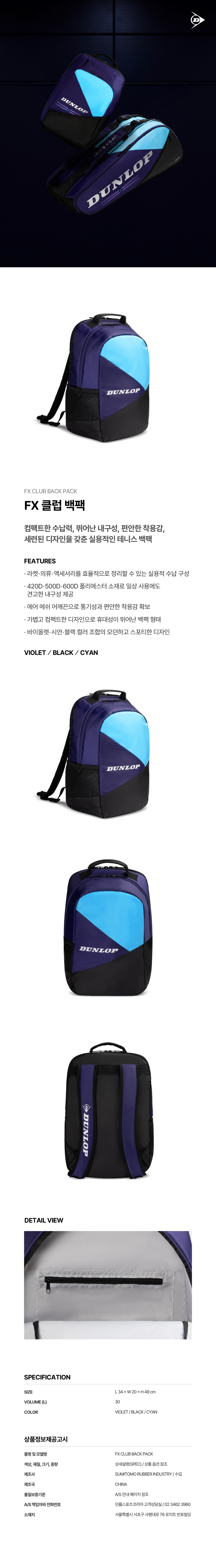 | a/s책임자와 전화번호 | 던롭스포츠코리아 주식회사 AS대표번호 02)3462-3960 |
