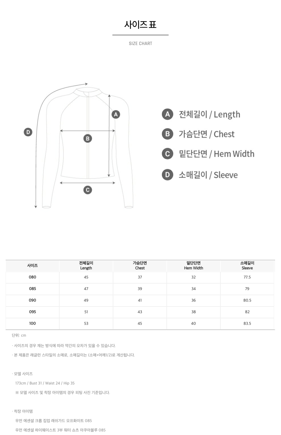 | 치수 | 080,085,090,095,100 |