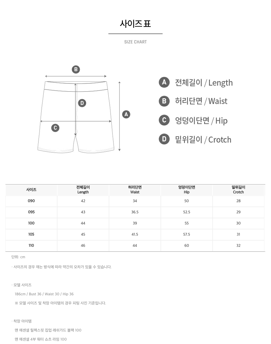 | 소재 | 쇼츠 겉감: 폴리에스터 100% / 쇼츠 안감: 폴리에스터 91%, 폴리우레탄 9% / 이너드로즈 안감: 폴리에스터 73%, 폴리우레탄 27% |
