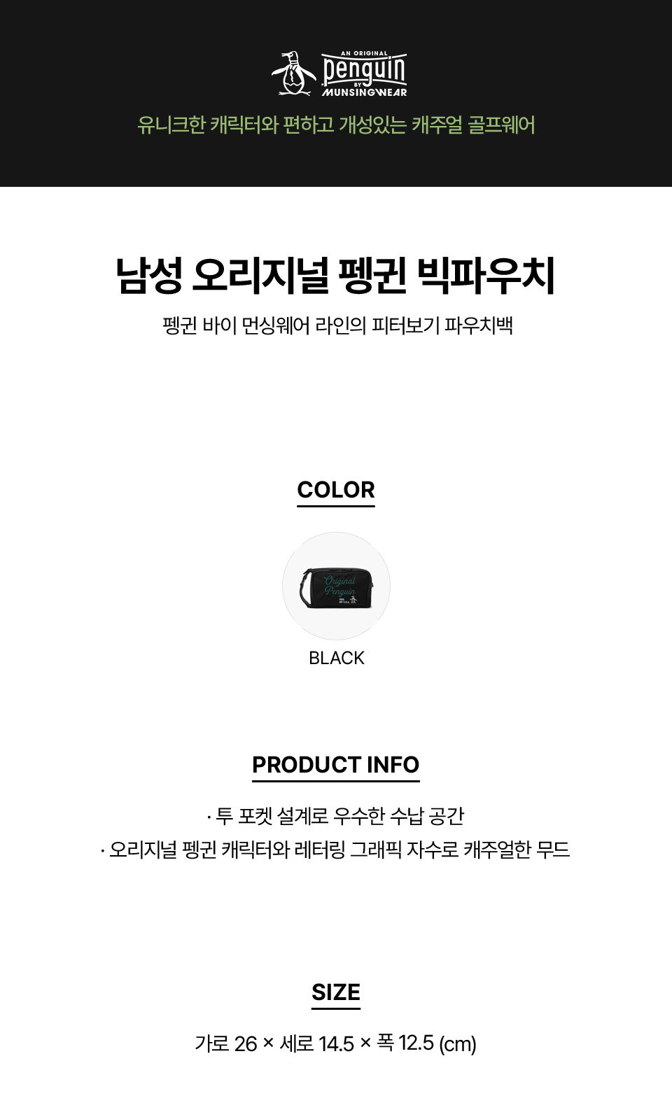[먼싱웨어] 남성 오리지널 펭귄 빅파우치 블랙 MR121PBG21