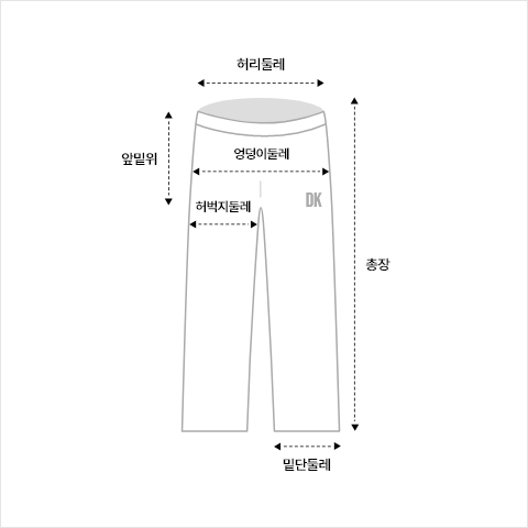 1.허리둘레: 허리단을 일자로 세팅하여 측정한 둘레