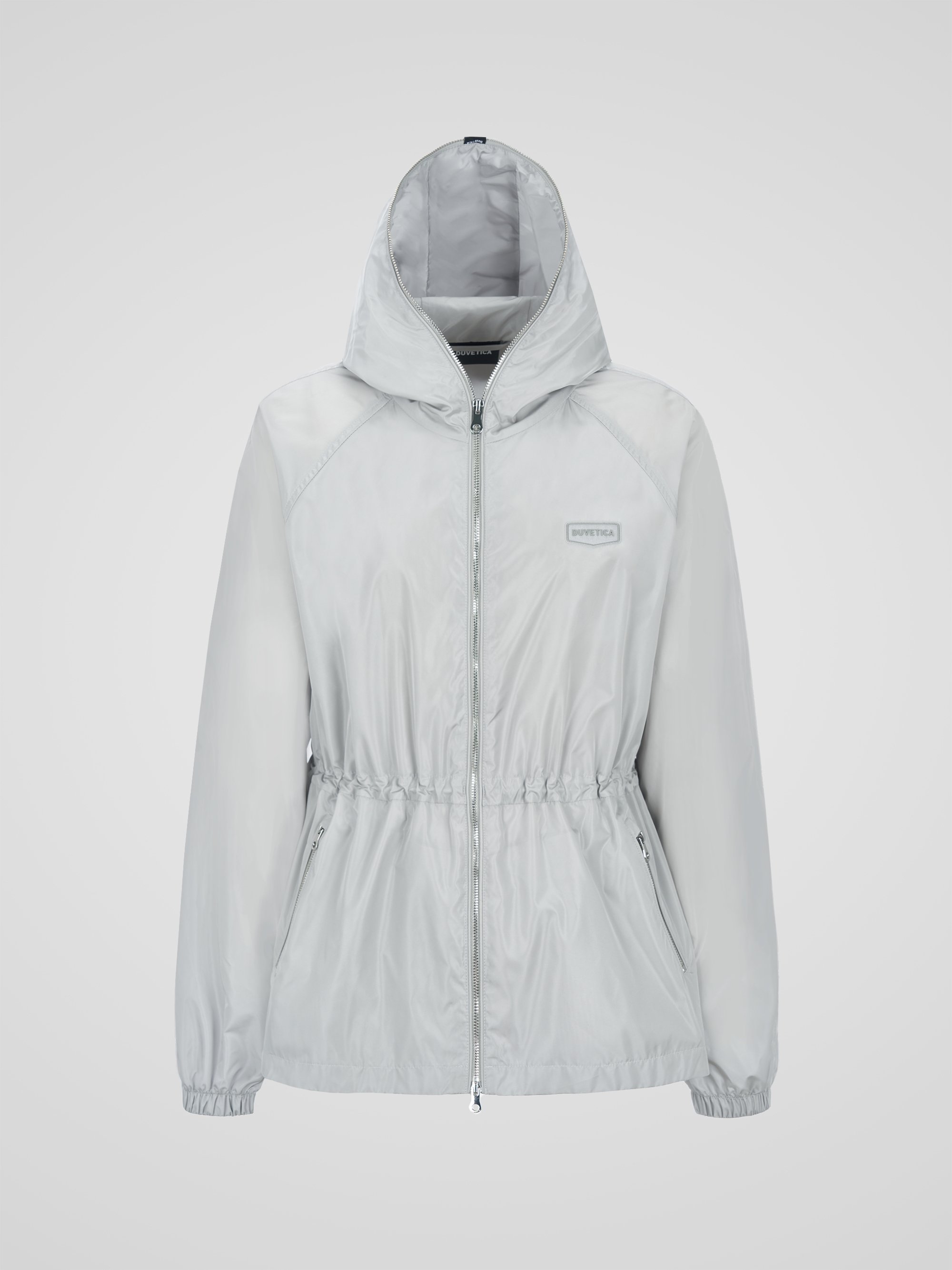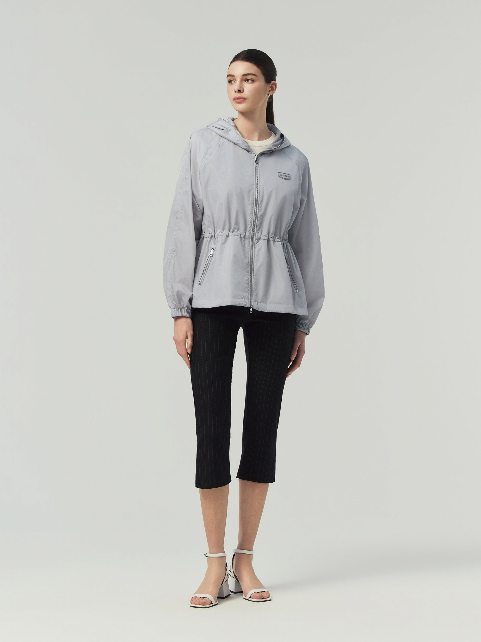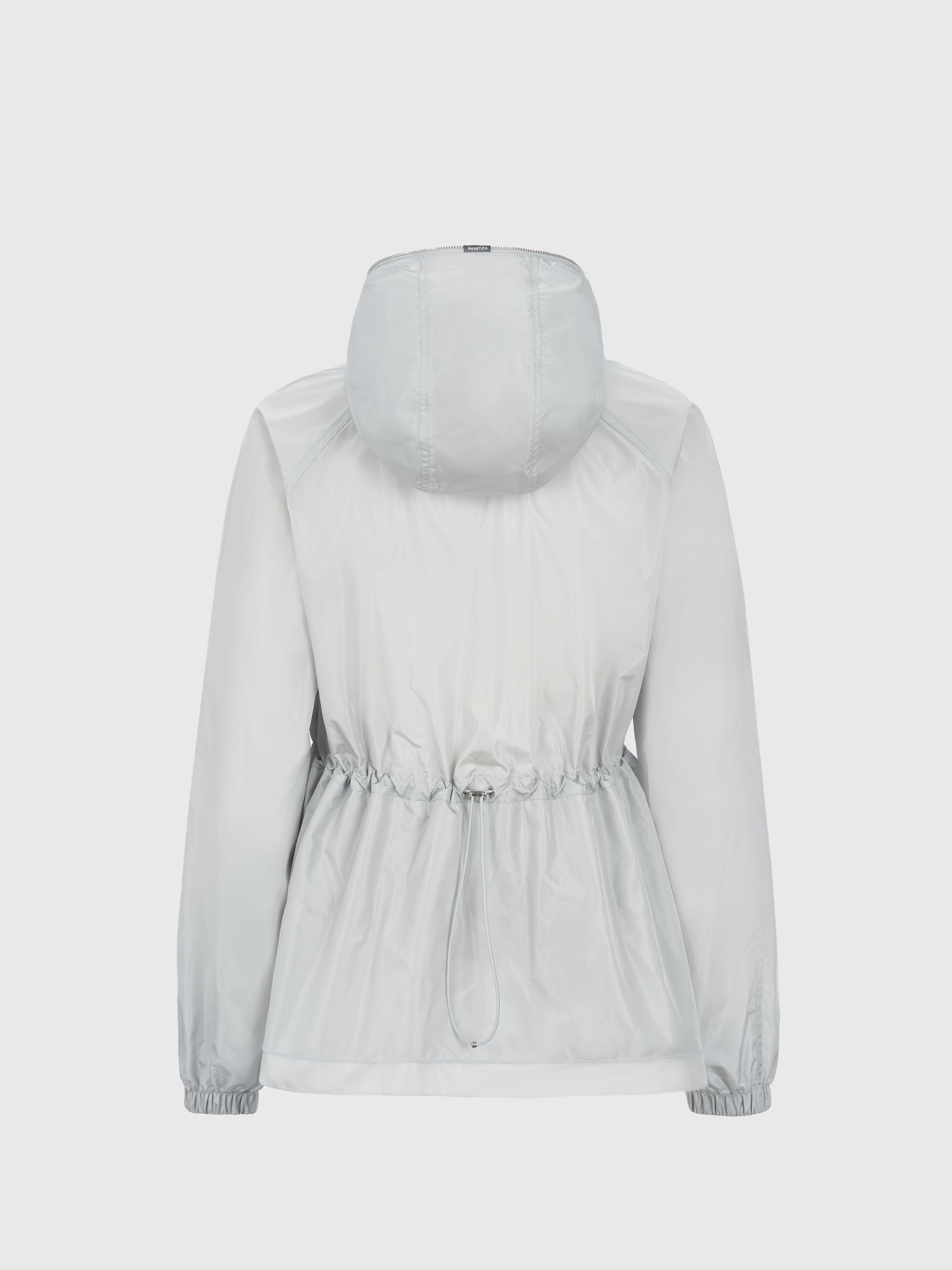 - 훌륭한 광택감의 발수 기능성 원단을 적용한 미드 기장 바람막이 자켓