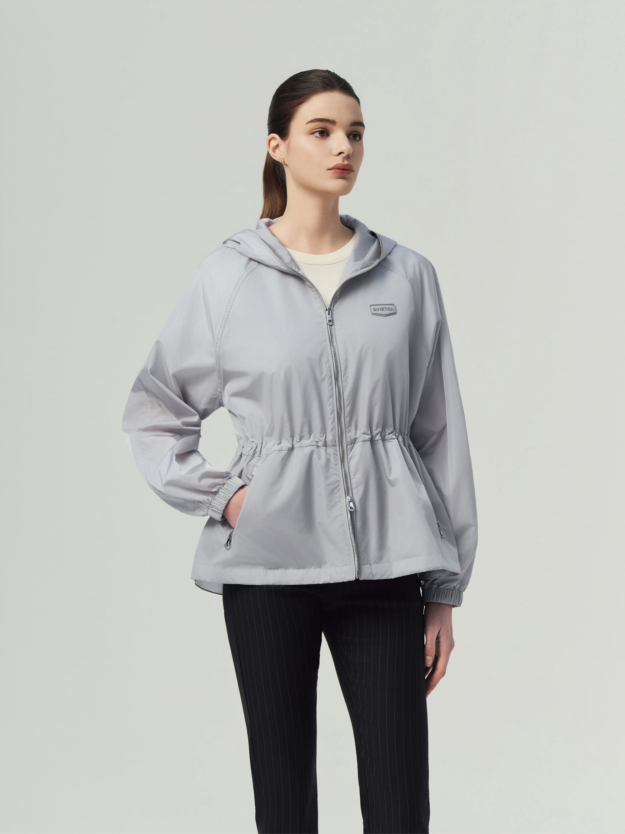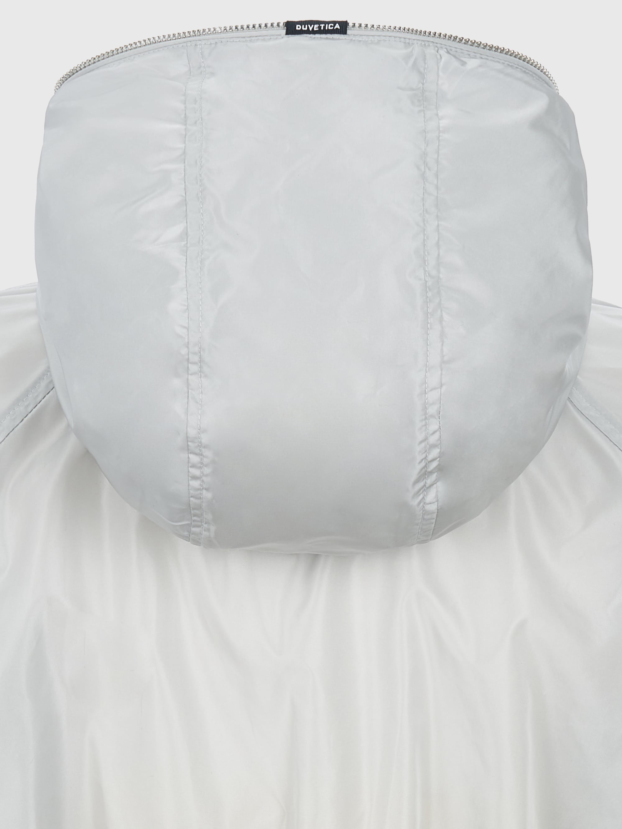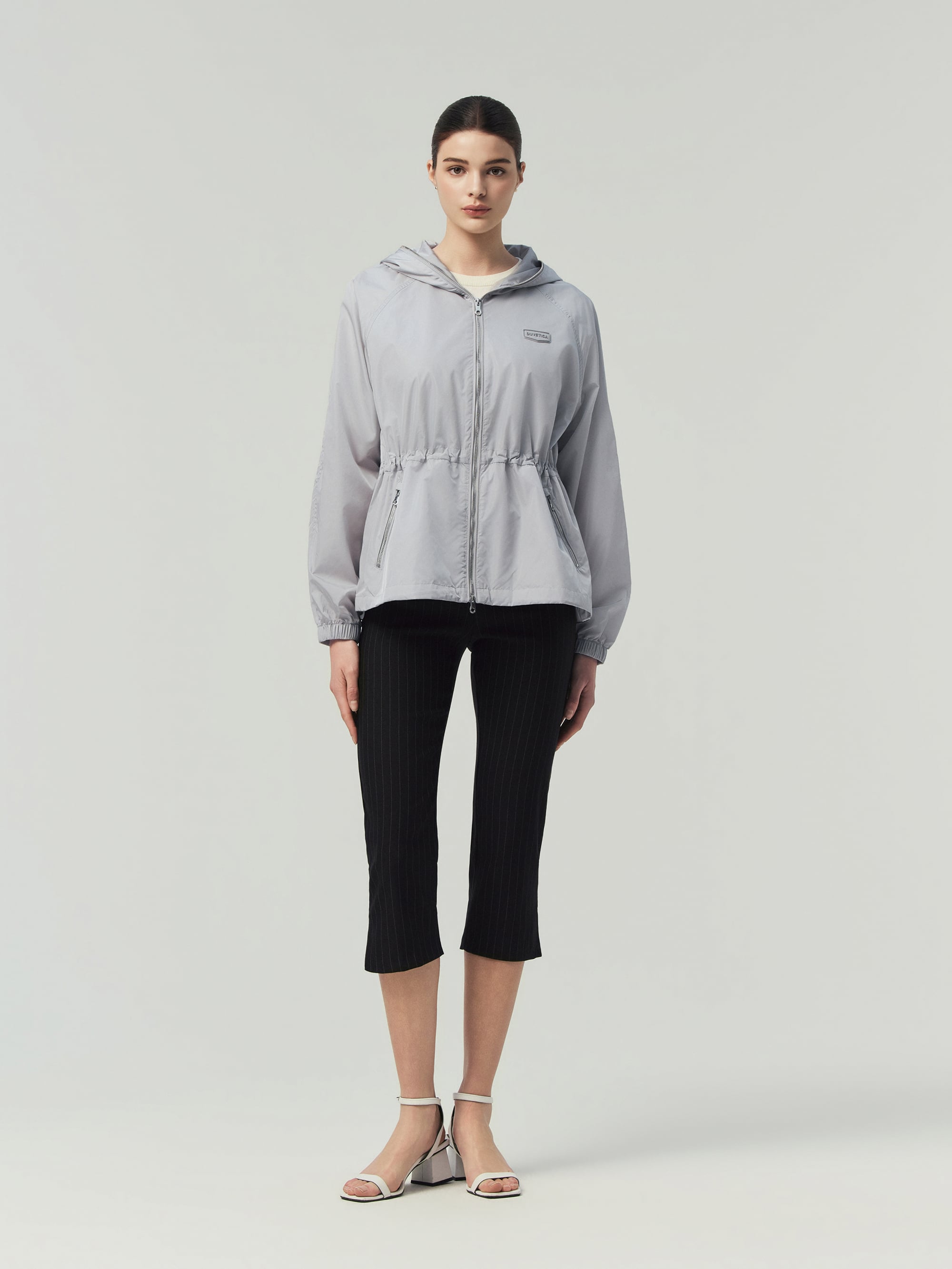 - 훌륭한 광택감의 발수 기능성 원단을 적용한 미드 기장 바람막이 자켓
