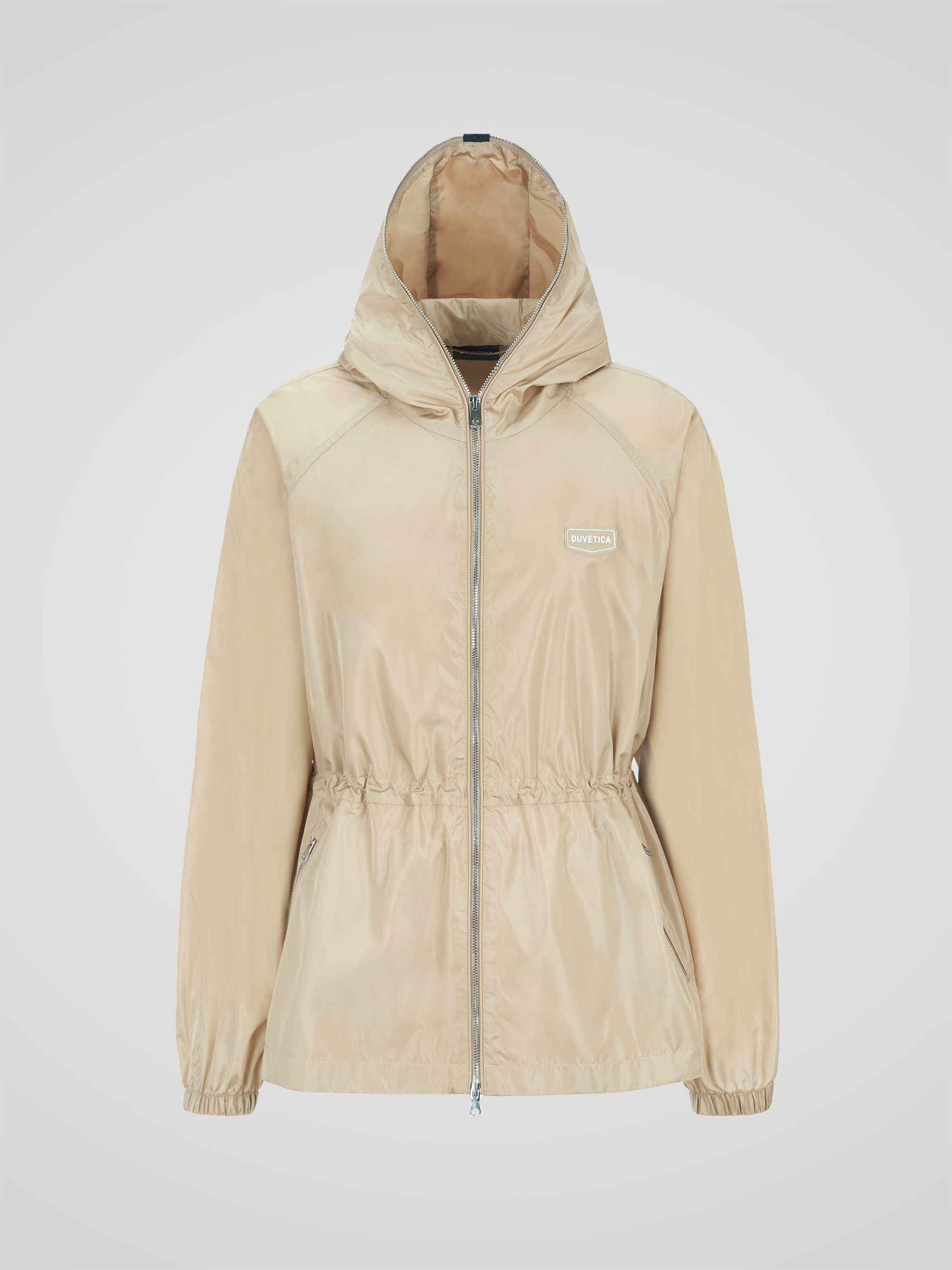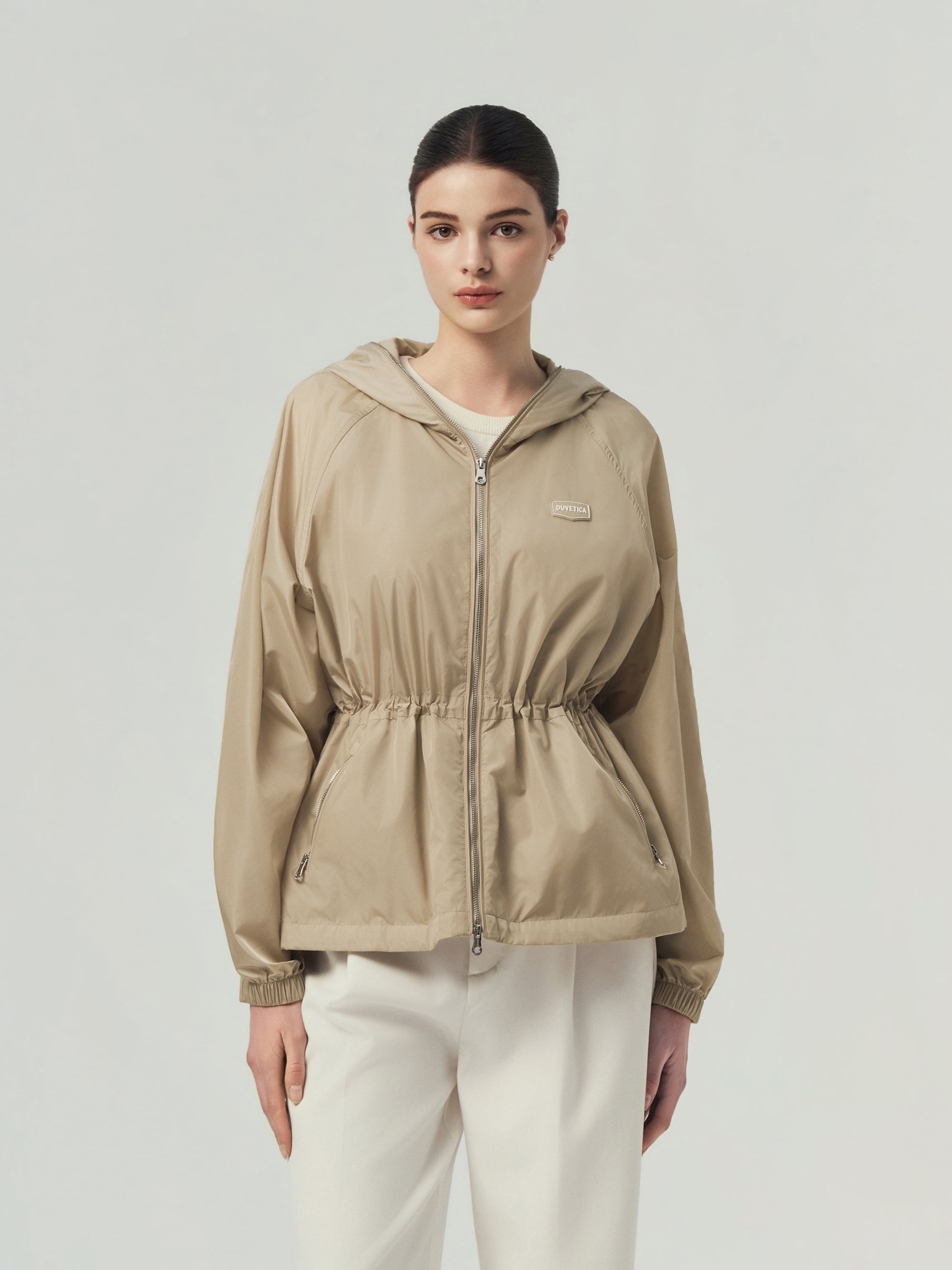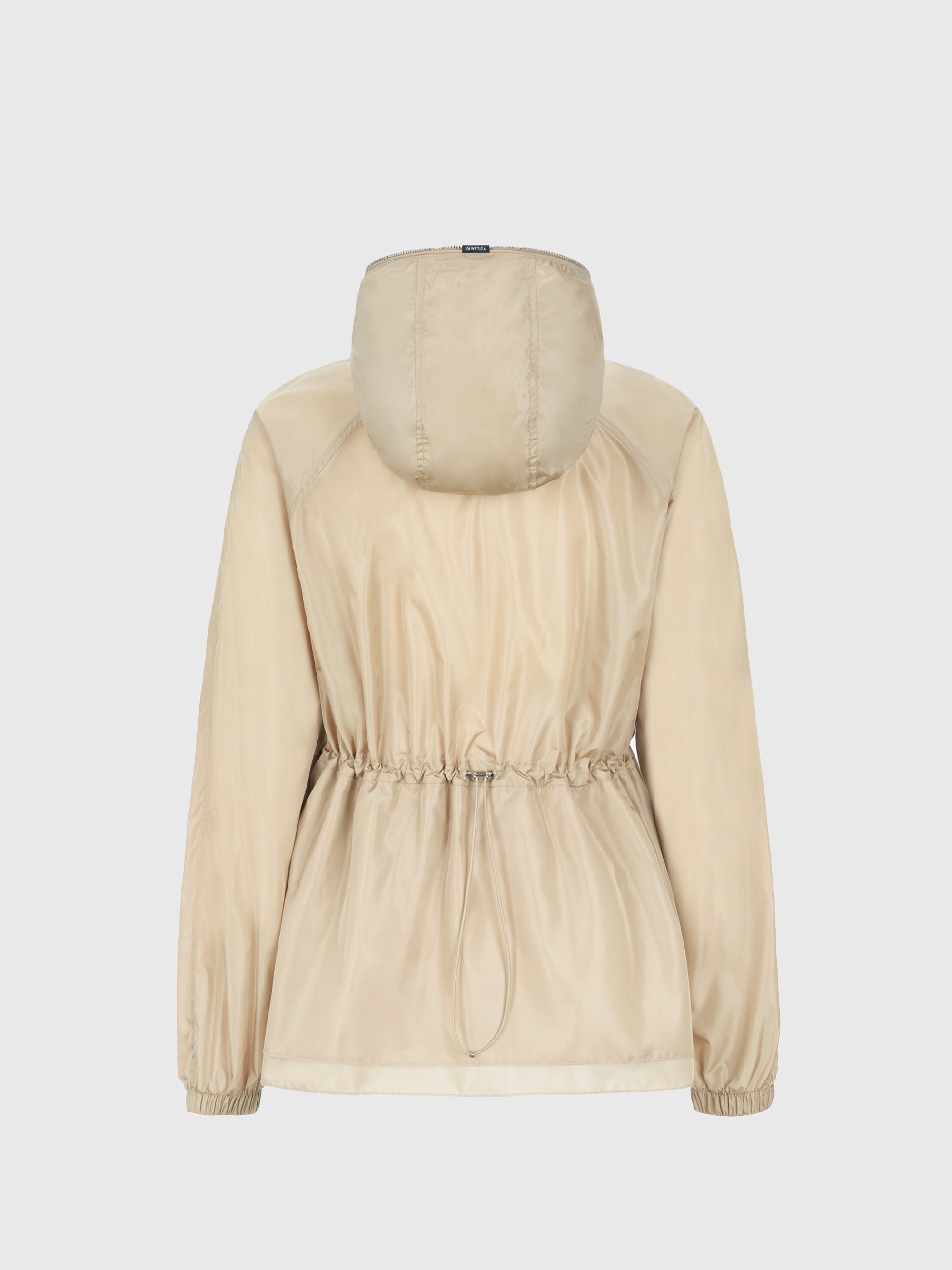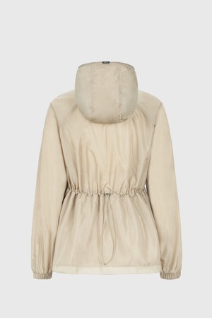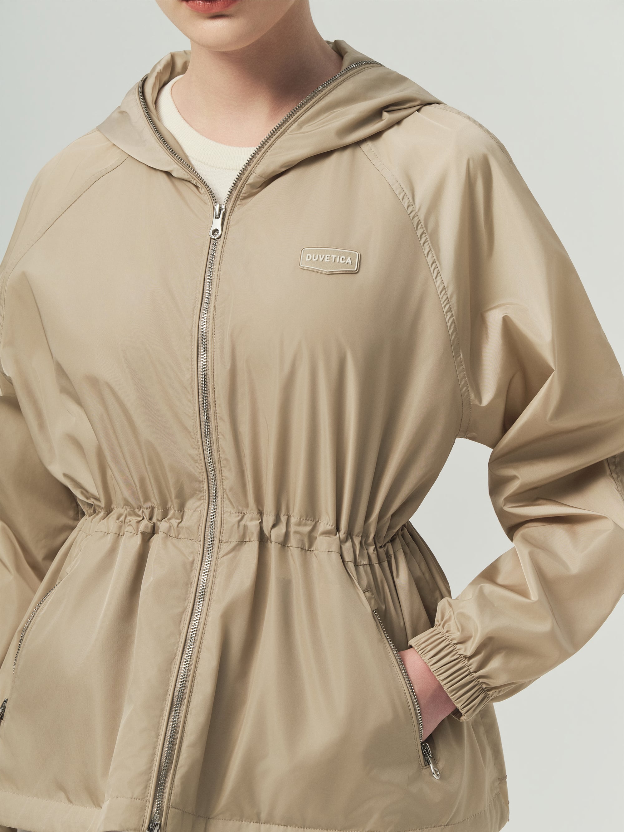 - 훌륭한 광택감의 발수 기능성 원단을 적용한 미드 기장 바람막이 자켓