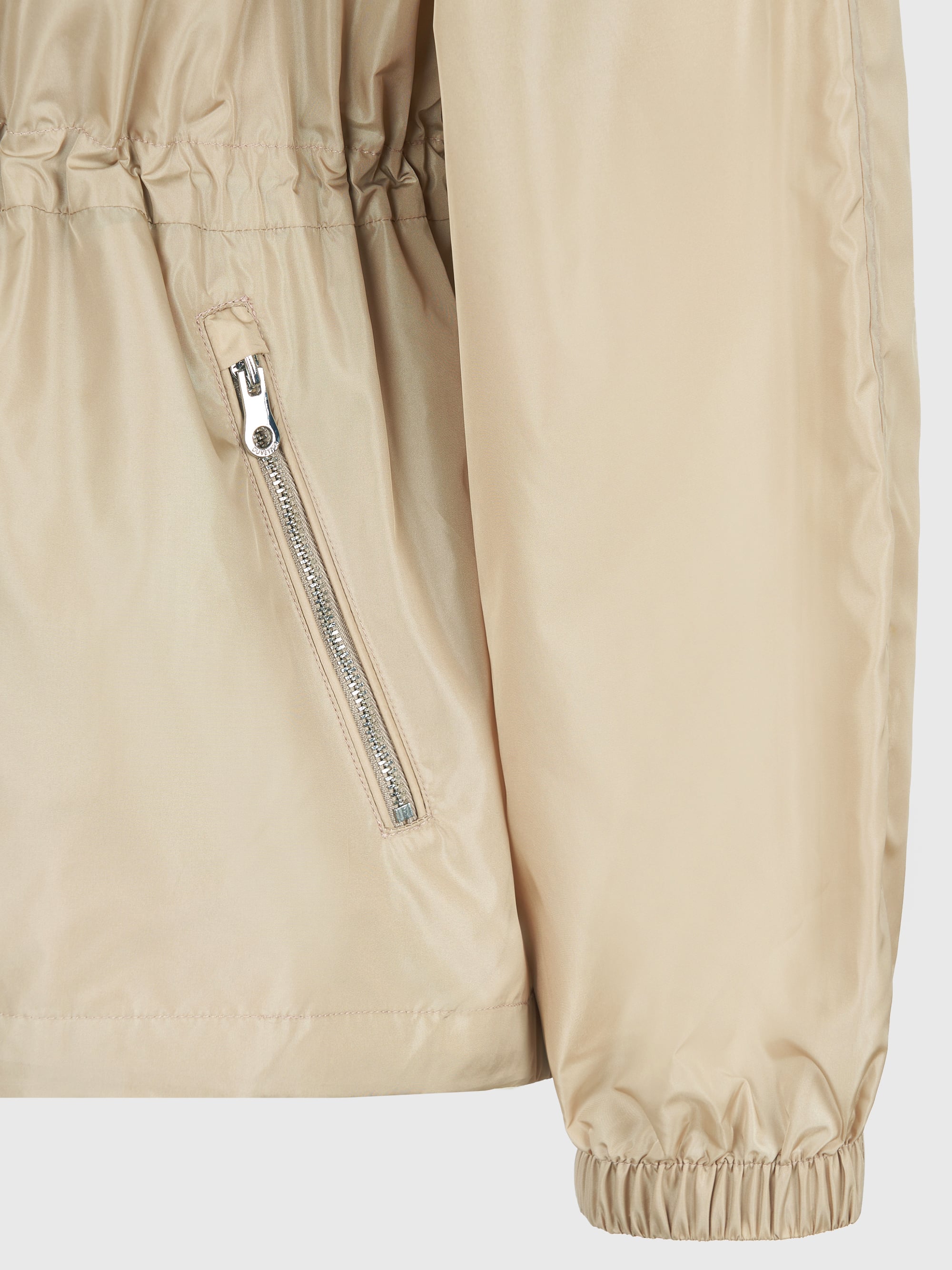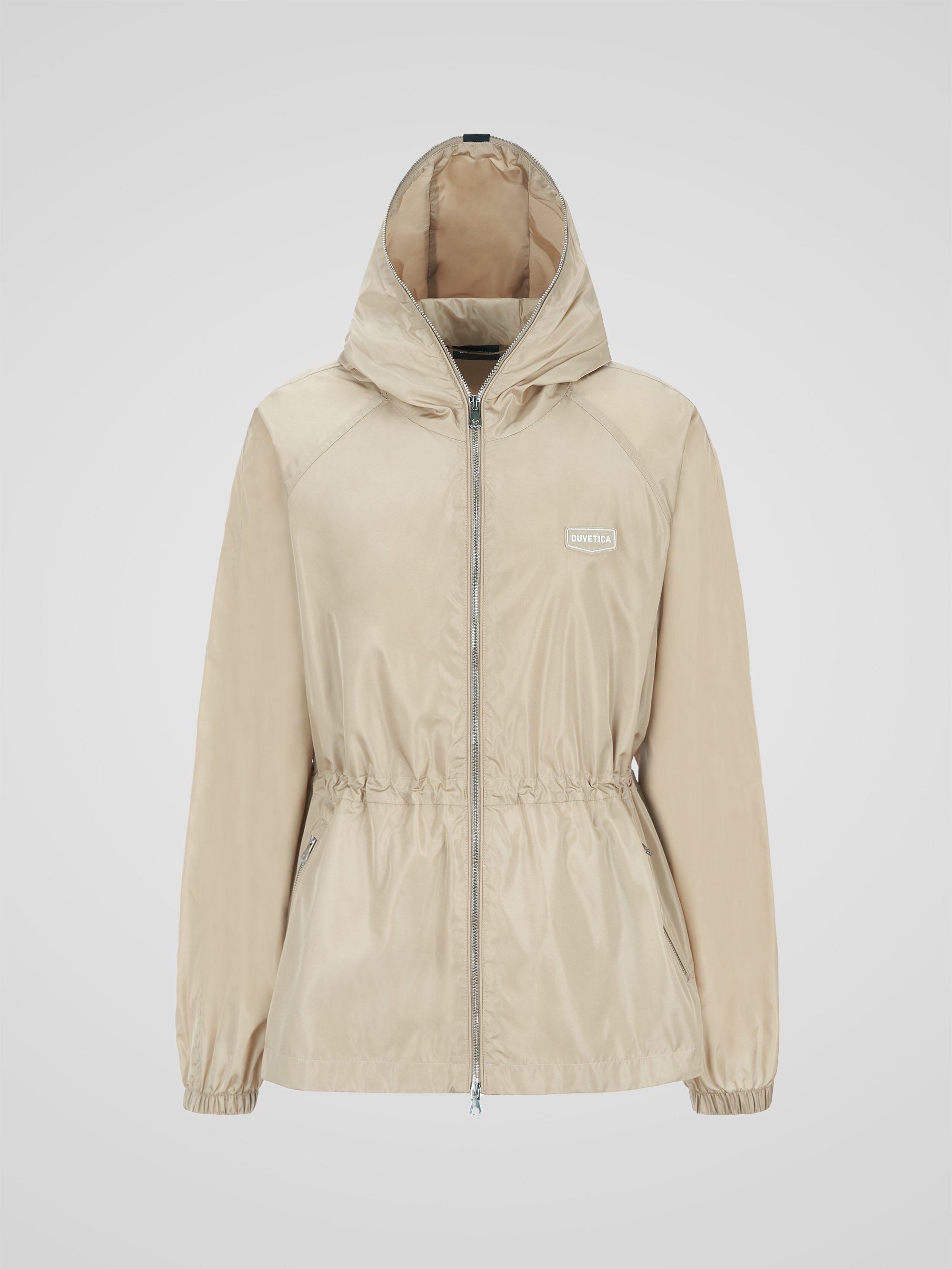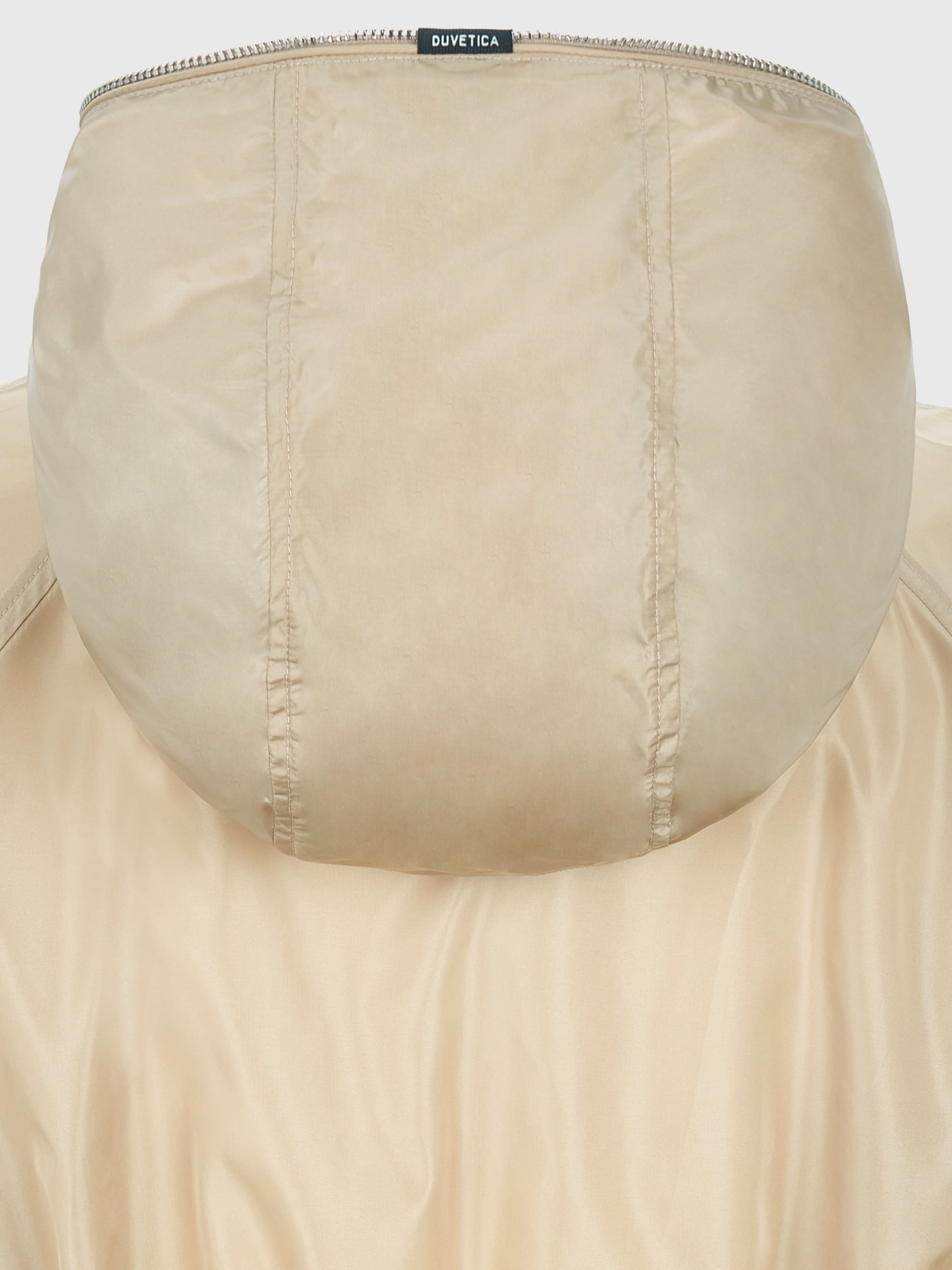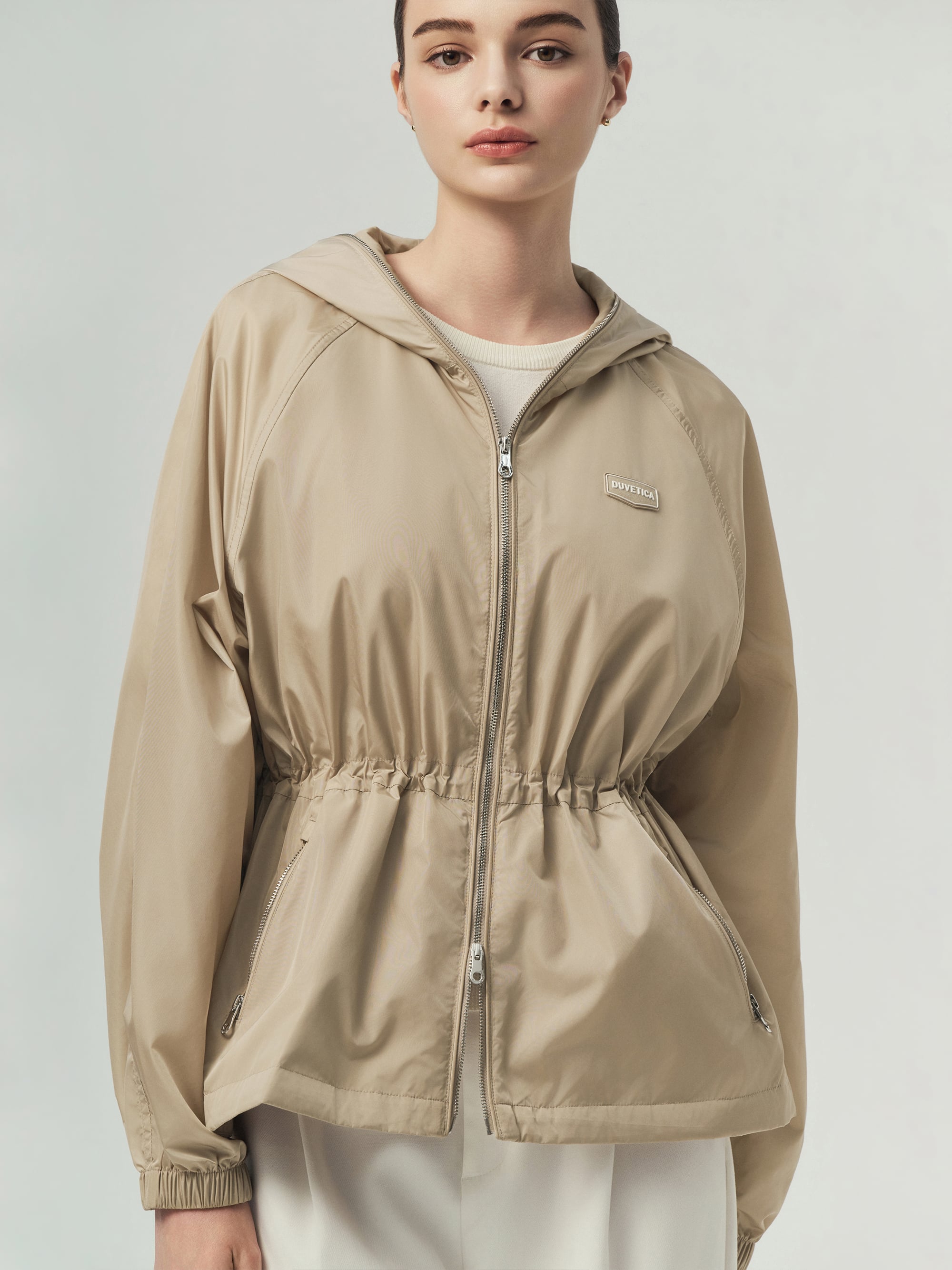 - 훌륭한 광택감의 발수 기능성 원단을 적용한 미드 기장 바람막이 자켓