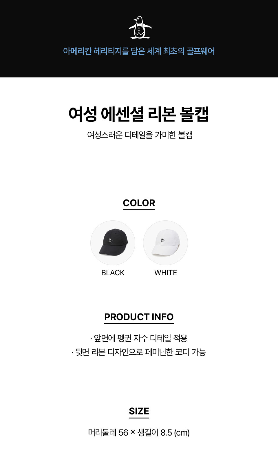 [먼싱웨어] 여성 에센셜 리본 볼캡 블랙 MR122LCP13