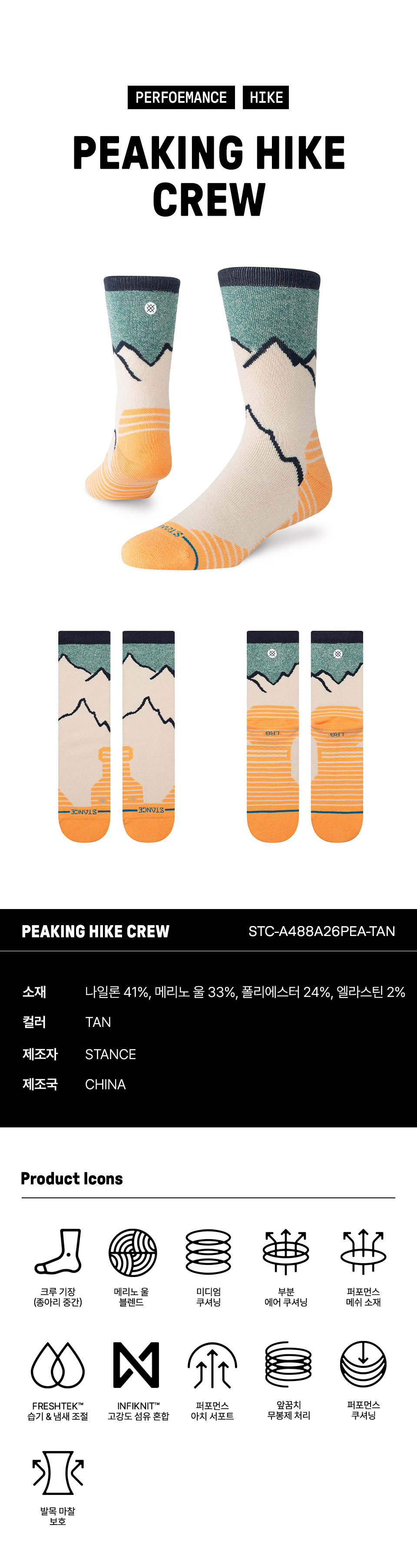| 소재 | 나일론 41%, 메리노 울 33%, 폴리에스터 24%, 엘라스테인 2% |