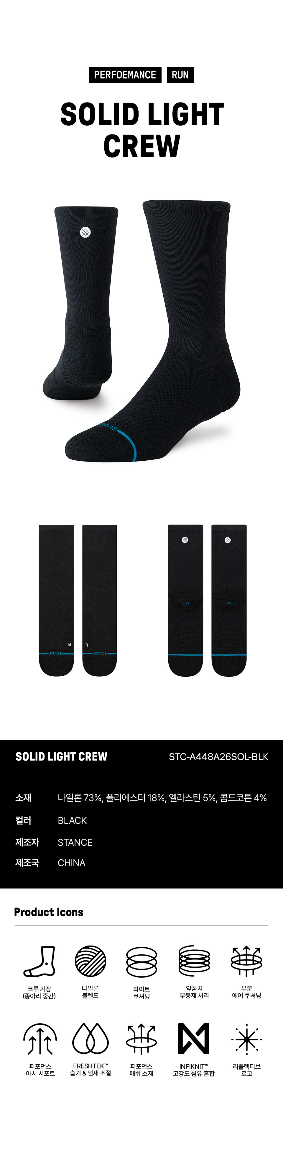 [UNISEX] 솔리드 라이트 크루 블랙 STC-A448A26SOL-BLK