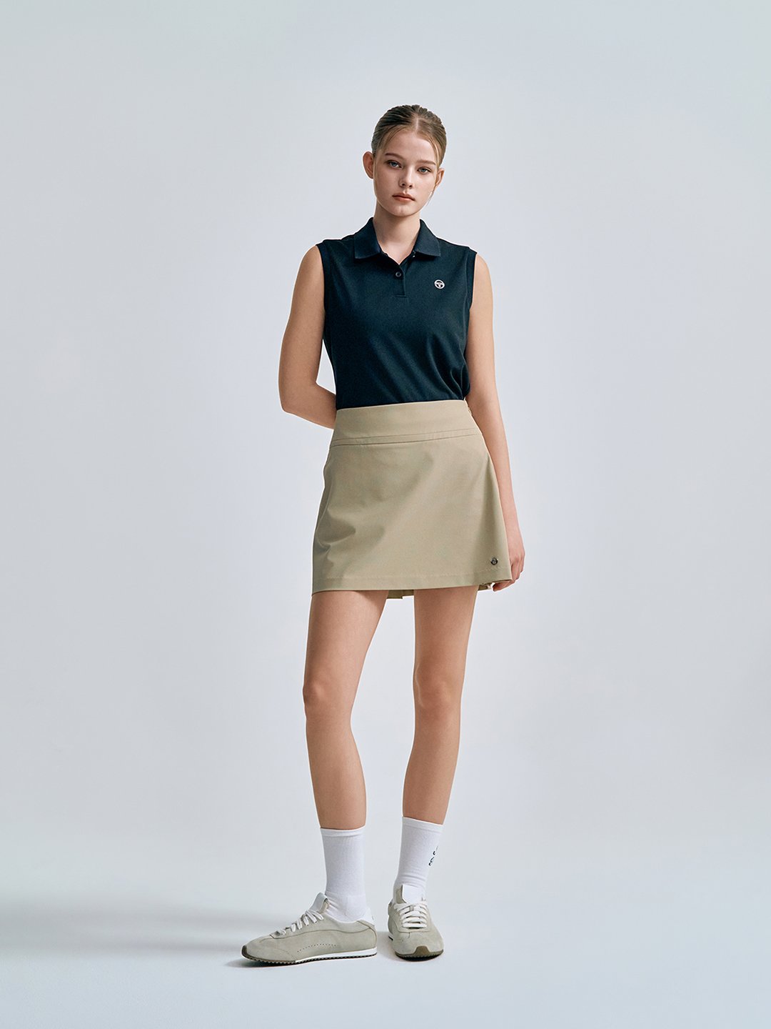 - -- 시즈널한 컬러감이 돋보이는 아이템으로 스커트와 연출하여 클래식한 테니스룩 연출