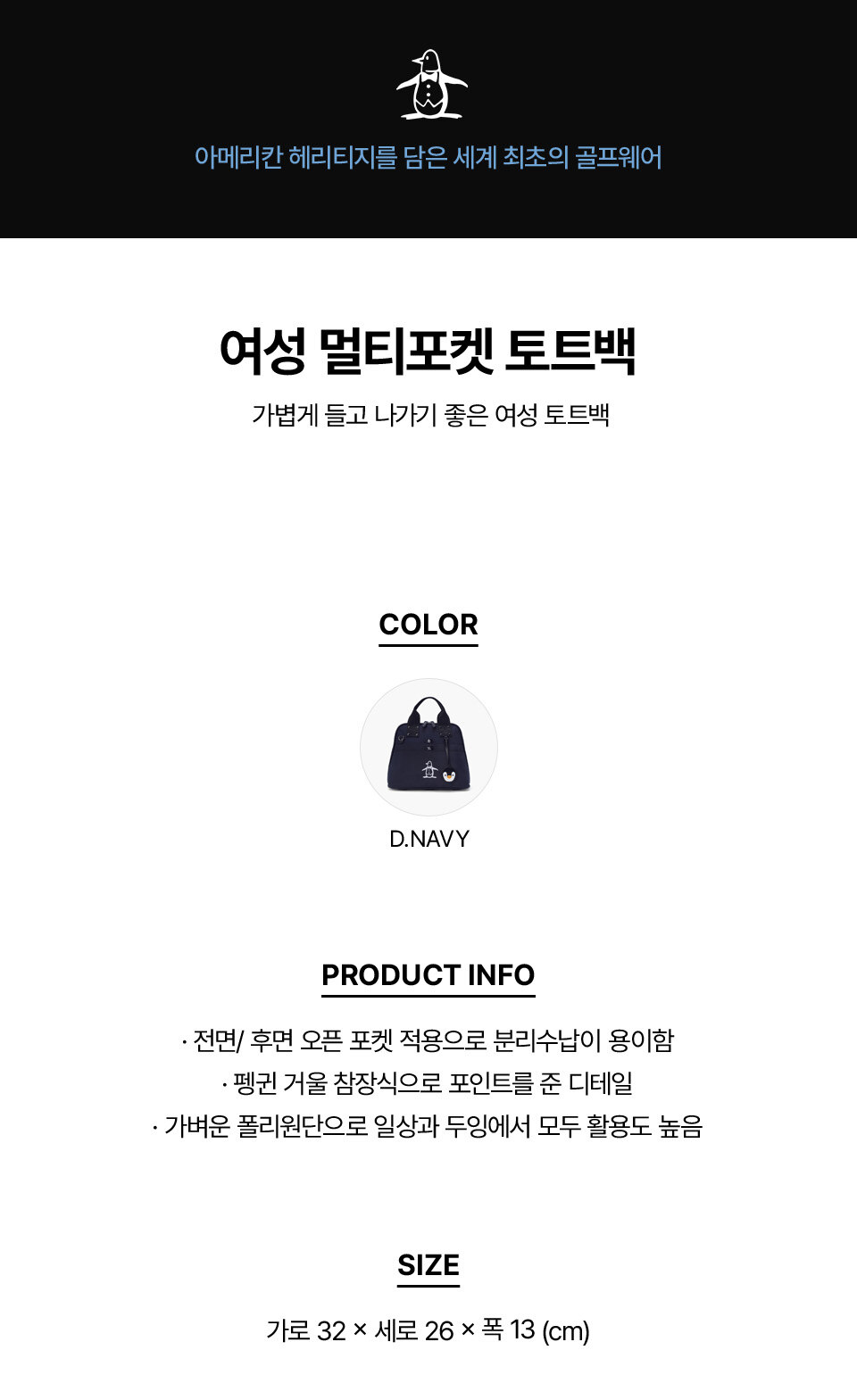 [먼싱웨어] 여성 멀티포켓 토트백 다크네이비 MR122LBG22