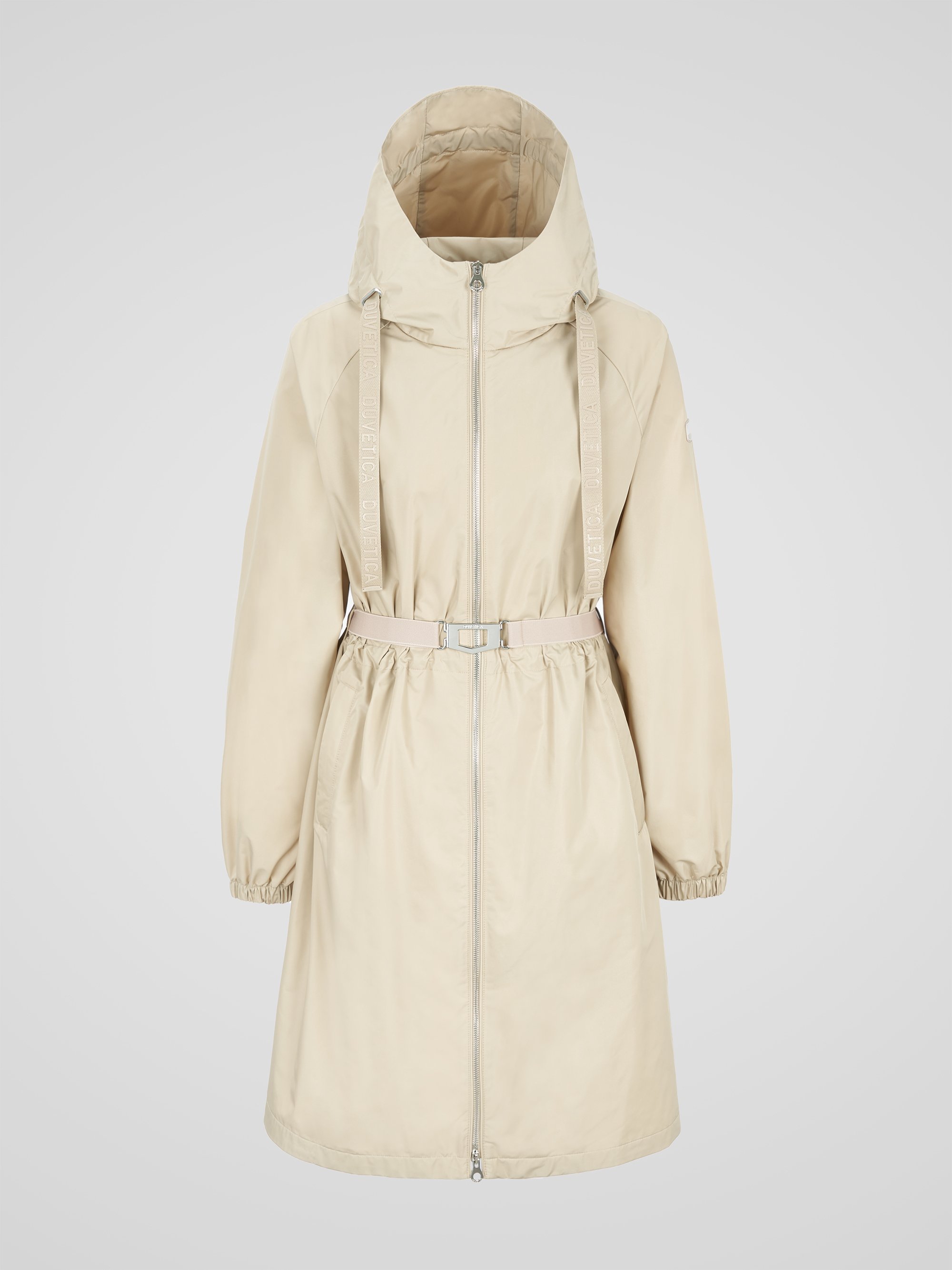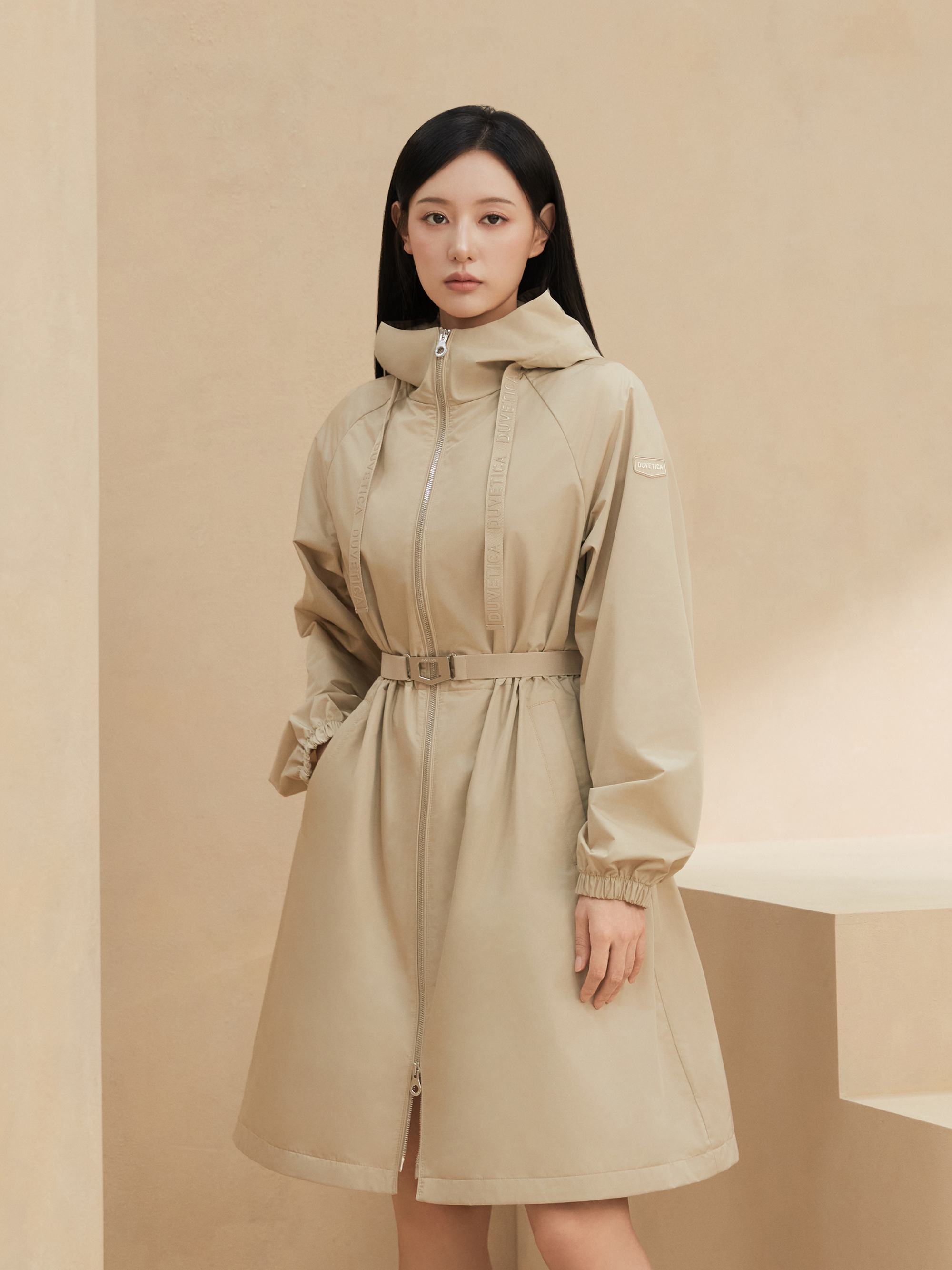 - 여성스러운 코트 외관, 데일리룩 및 포멀한 룩에 적합. 금속 듀베티카 심볼 버클 허리벨트로 실루엣 조절 가능