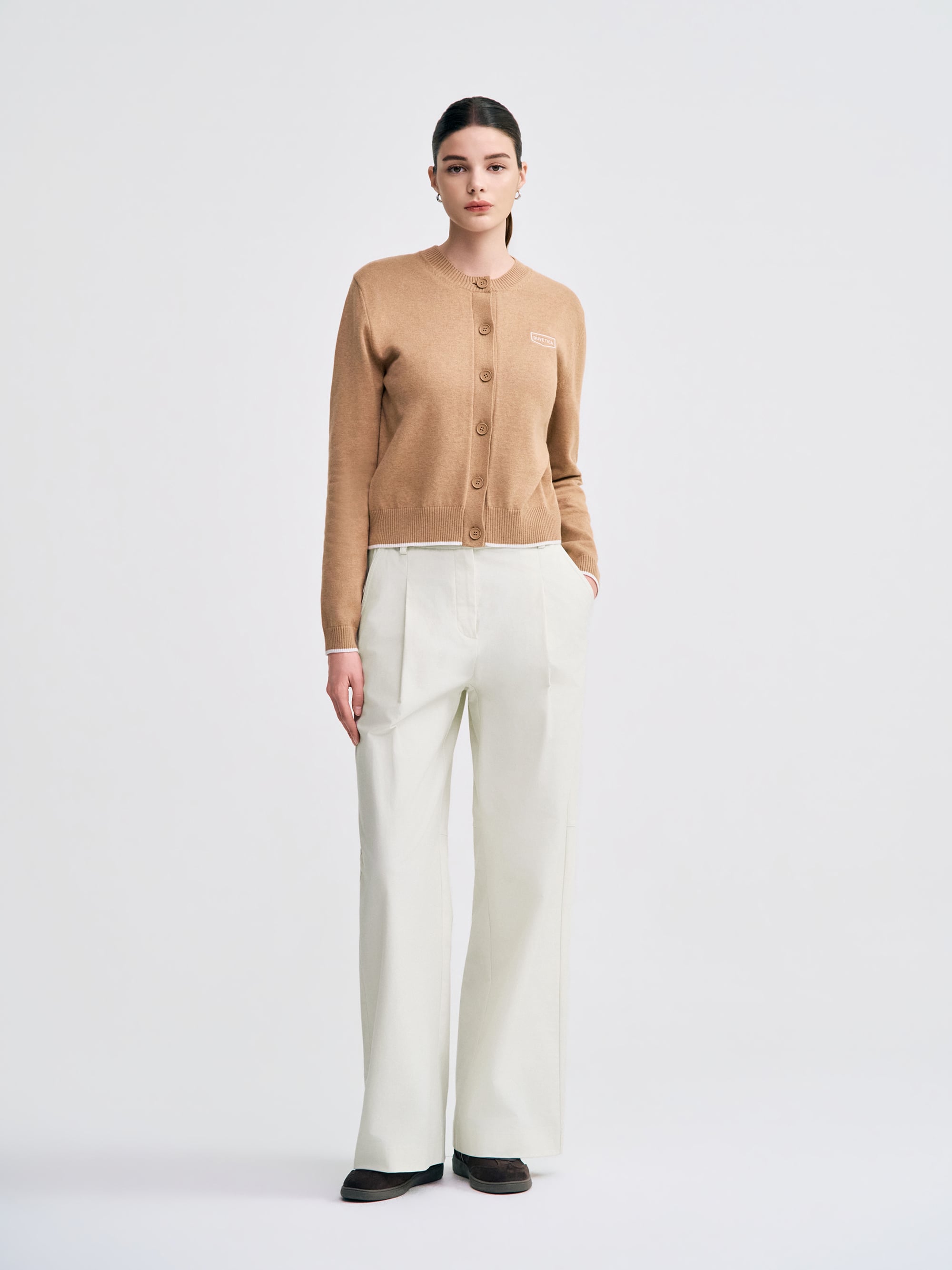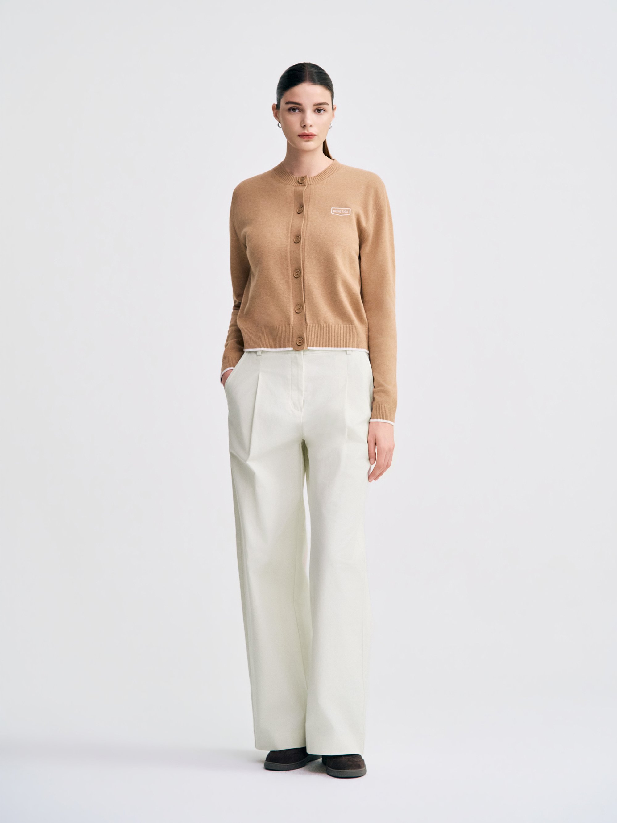 - 앞면 핀턱 디테일을 넣어 여성스러운 실루엣을 강조한 디자인