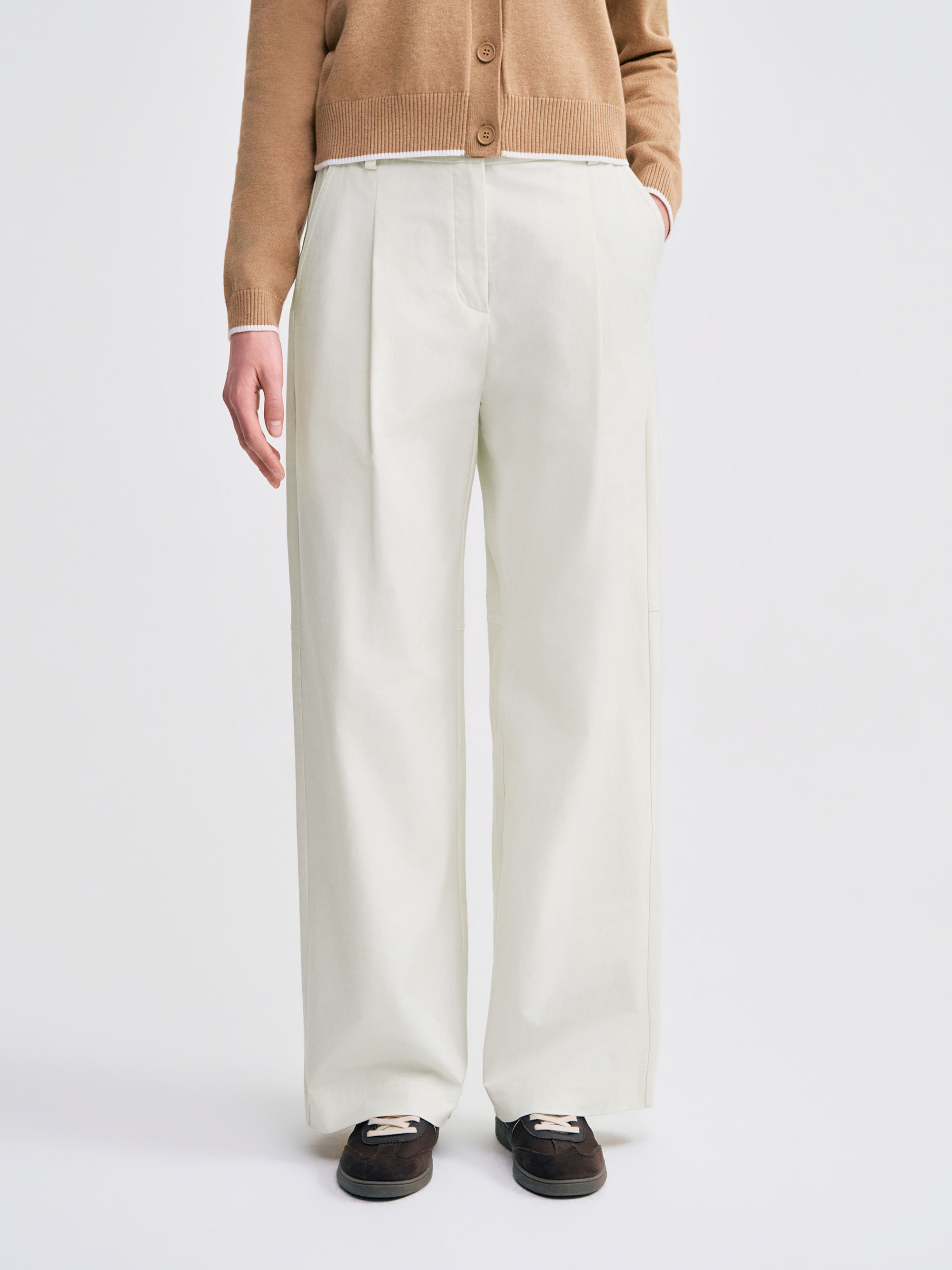 - 탄탄한 조직감의 코튼 스트레치 소재의 와이드 핏 팬츠