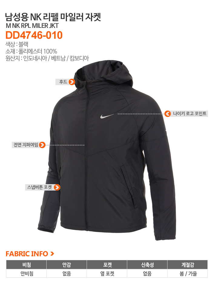[나이키] 남성용 NK 리펠 마일러 자켓 DD4746_010