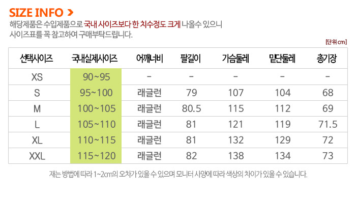 세탁방법 및 취급시 주의사항땀으로 인한 부분 탈색이 발생할수있으니 제품이 땀으로 젖었을시 즉시 세탁하여 주시기 바랍니다.제품특성에 다라 올이 튀는 현상이 발생할수 있으니 주의 하시기 바랍니다.세탁전 주의사항은 제품에 붙은 안내 택을 반드시 참고하여 주시기 바랍니다.품질 경영 촉진법에 의한 품질 표시를 꼭 참조하시어 세탁하십시오