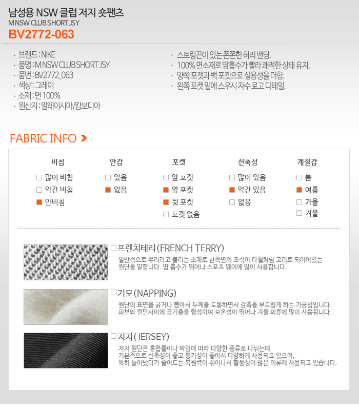 [나이키] 남성용 NSW 클럽 저지 숏팬츠 BV2772_063