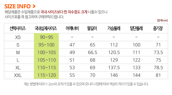 | 세탁방법 및 취급시 주의사항 | 땀으로 인한 부분 탈색이 발생할수있으니 제품이 땀으로 젖었을시 즉시 세탁하여 주시기 바랍니다.제품특성에 다라 올이 튀는 현상이 발생할수 있으니 주의 하시기 바랍니다.세탁전 주의사항은 제품에 붙은 안내 택을 반드시 참고하여 주시기 바랍니다.품질 경영 촉진법에 의한 품질 표시를 꼭 참조하시어 세탁하십시오 |