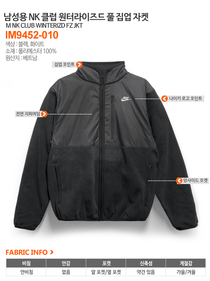 [나이키] 남성 클럽 원터라이즈드 풀집업 자켓 IM9452_010