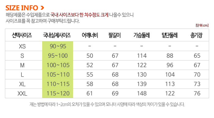 세탁방법 및 취급시 주의사항땀으로 인한 부분 탈색이 발생할수있으니 제품이 땀으로 젖었을시 즉시 세탁하여 주시기 바랍니다.제품특성에 다라 올이 튀는 현상이 발생할수 있으니 주의 하시기 바랍니다.세탁전 주의사항은 제품에 붙은 안내 택을 반드시 참고하여 주시기 바랍니다.품질 경영 촉진법에 의한 품질 표시를 꼭 참조하시어 세탁하십시오