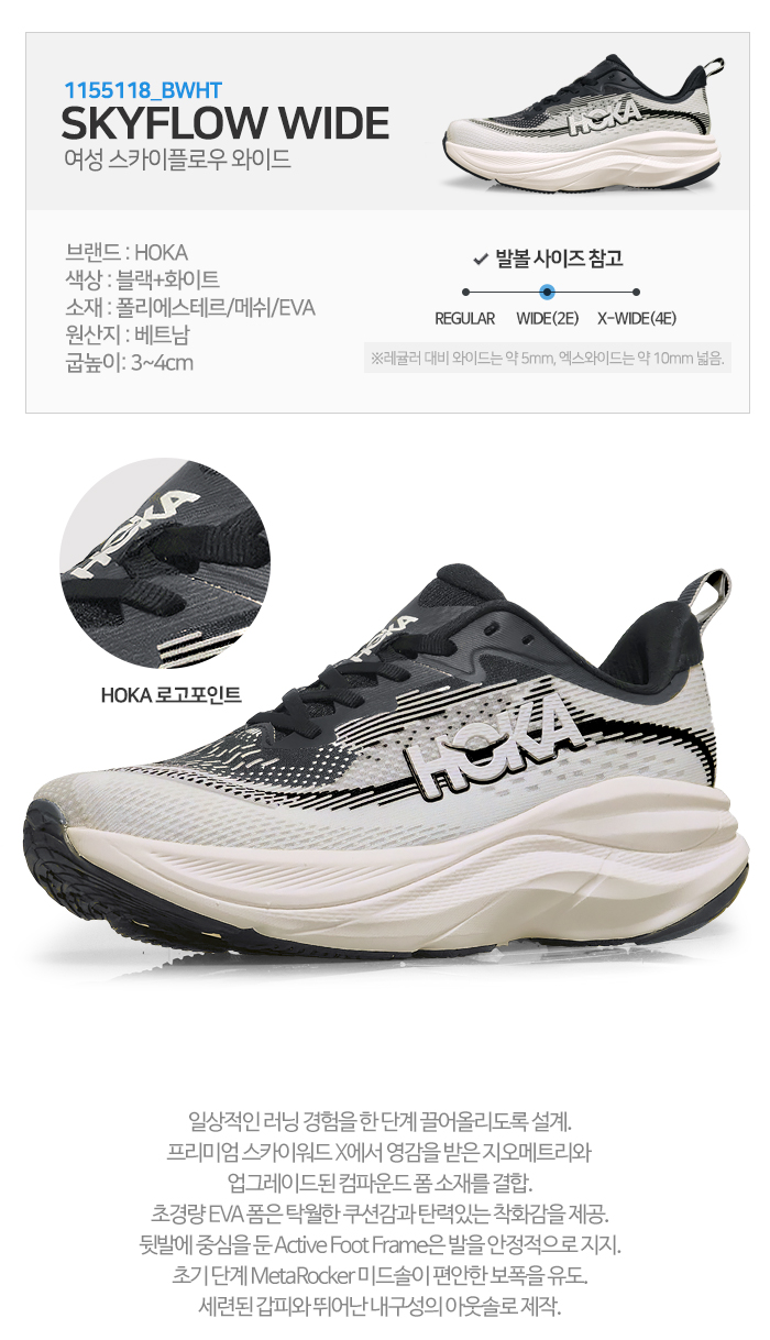 [호카] 여성 스카이플로우 와이드 1155118_BWHT