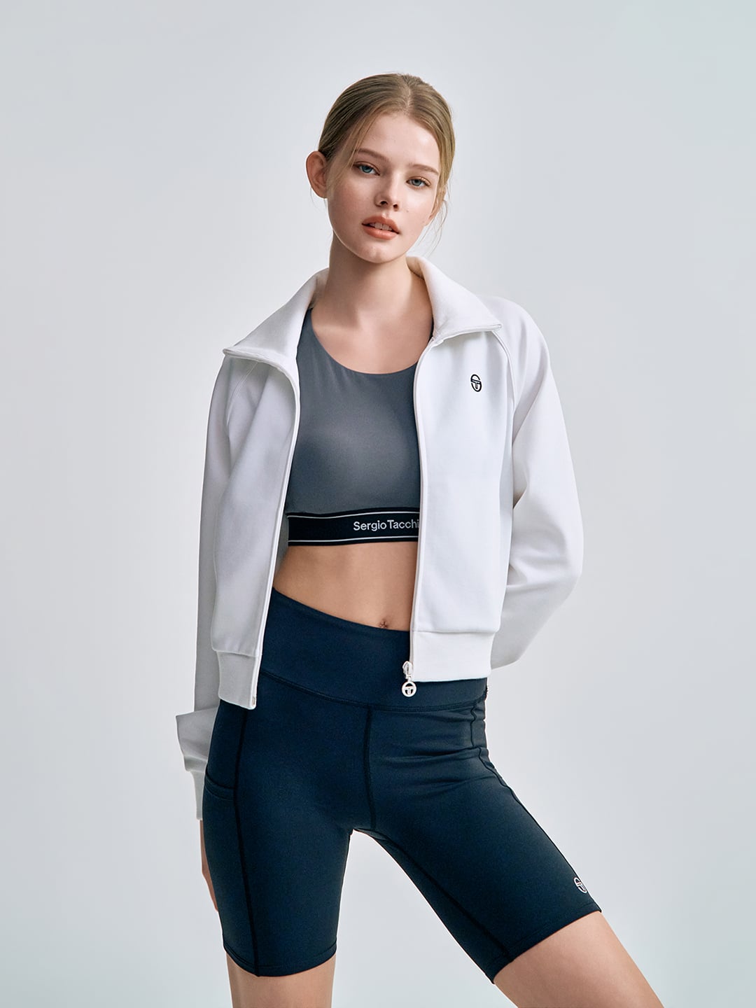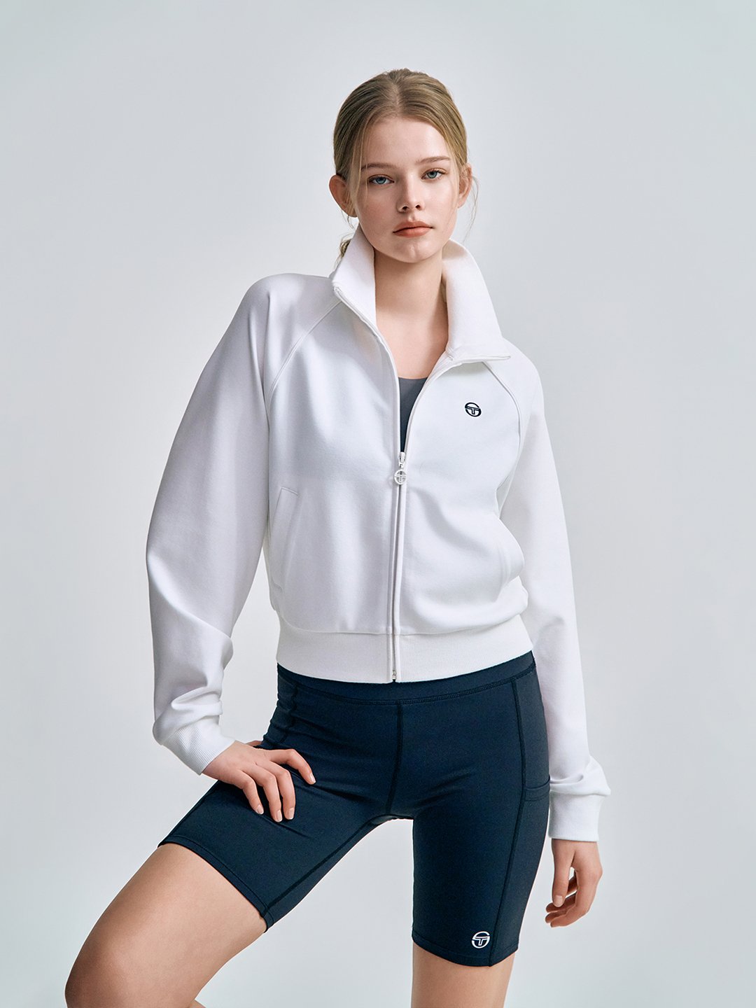 - -- 카라를 세워서 스텐넥으로 연출하거나, 접어서 카라 형태로 다양한 연출 가능