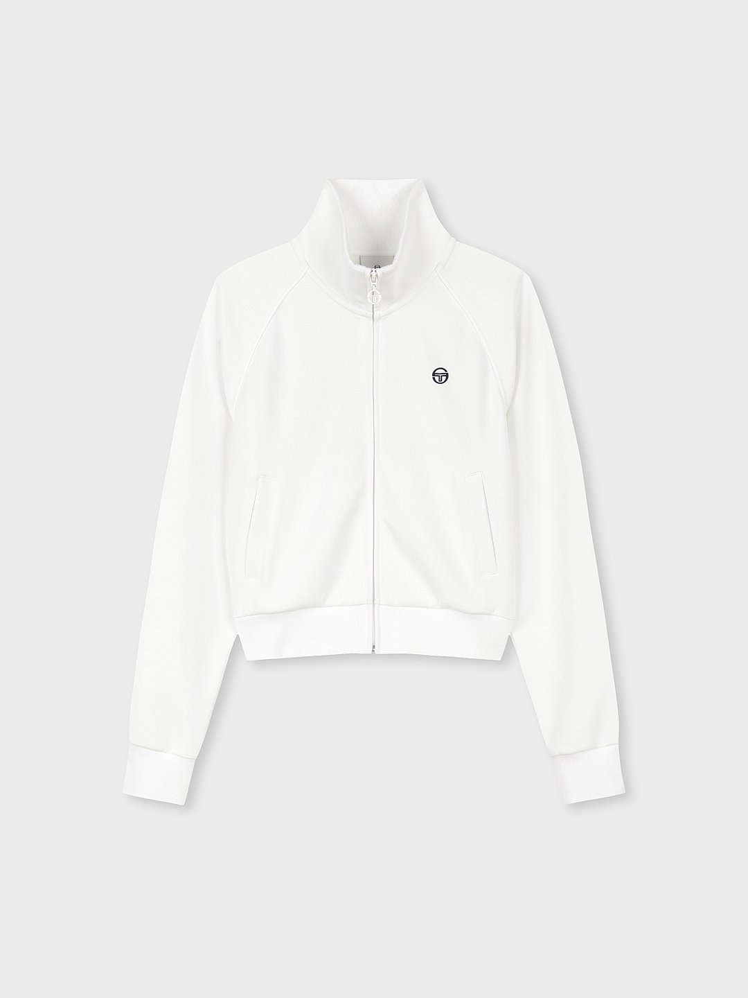 - -- 고급스러운 등판 필기체 자수 아트웍이 포인트인 크롭 트랙탑