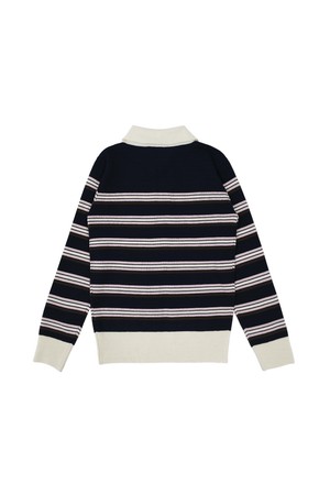 베리 스트라이프 카라넥 니트 NAVY