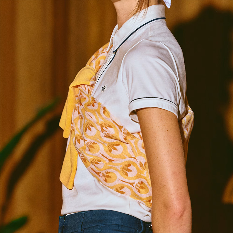 가슴 트레포일 로고로 오리지널스 감성을 더함.