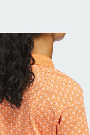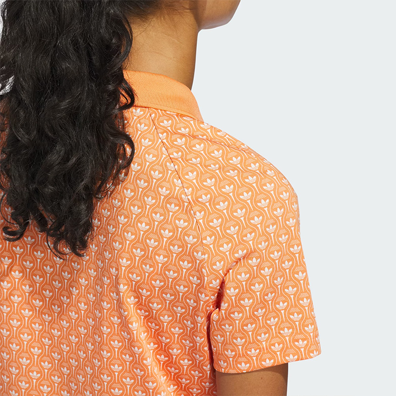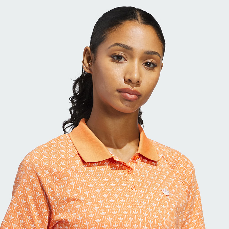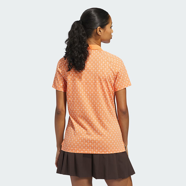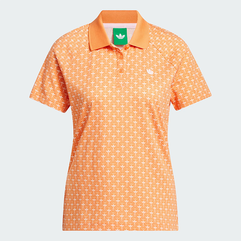 올오버 트레포일 패턴과 클래식한 폴로 칼라.