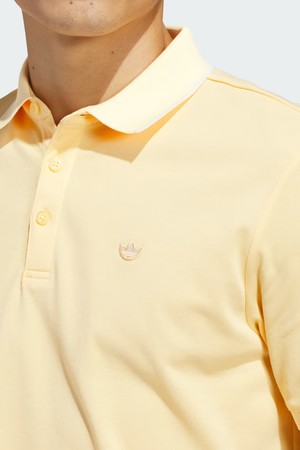 폴로 칼라에 트레포일 패치로 아이코닉한 무드.