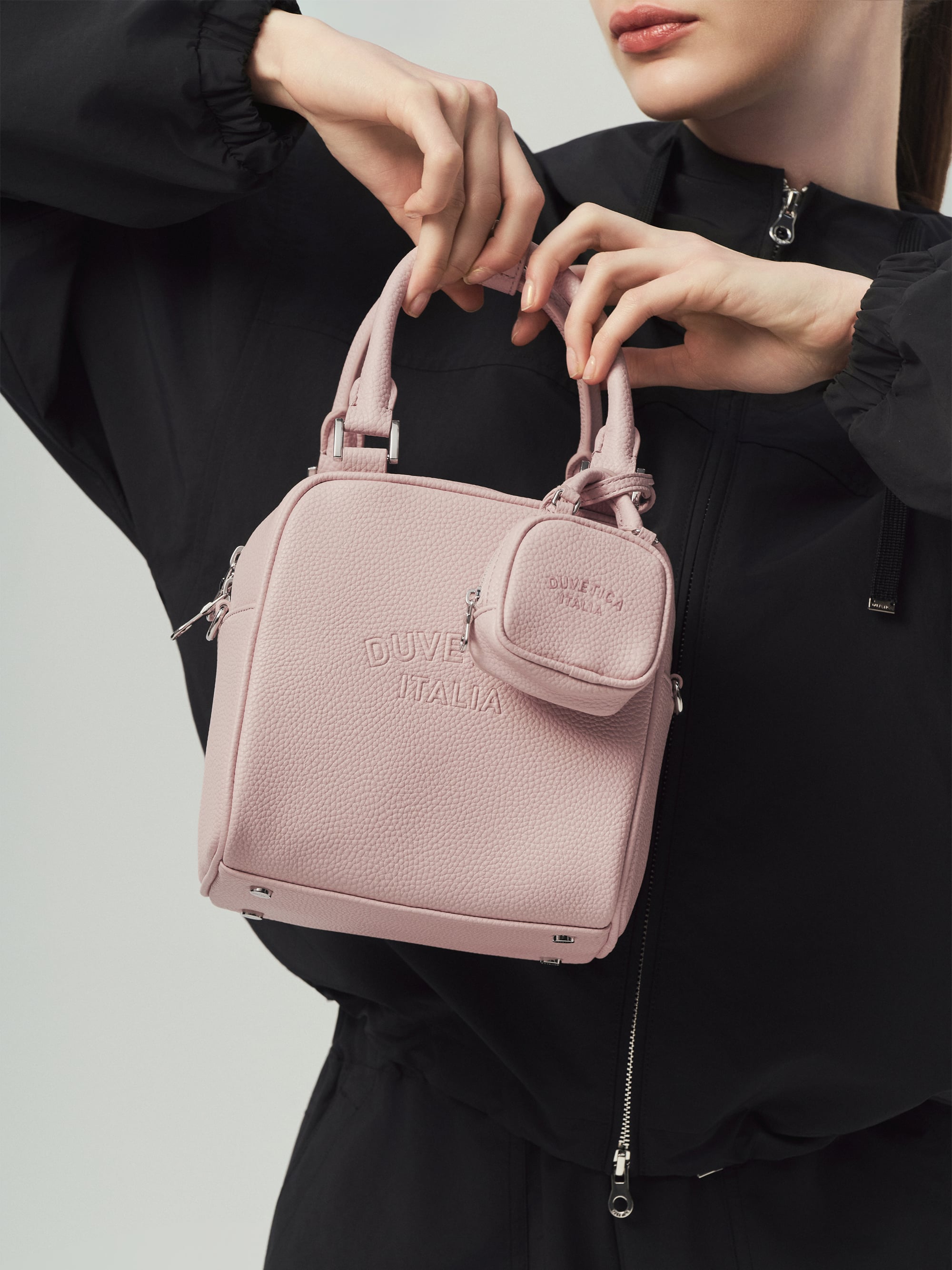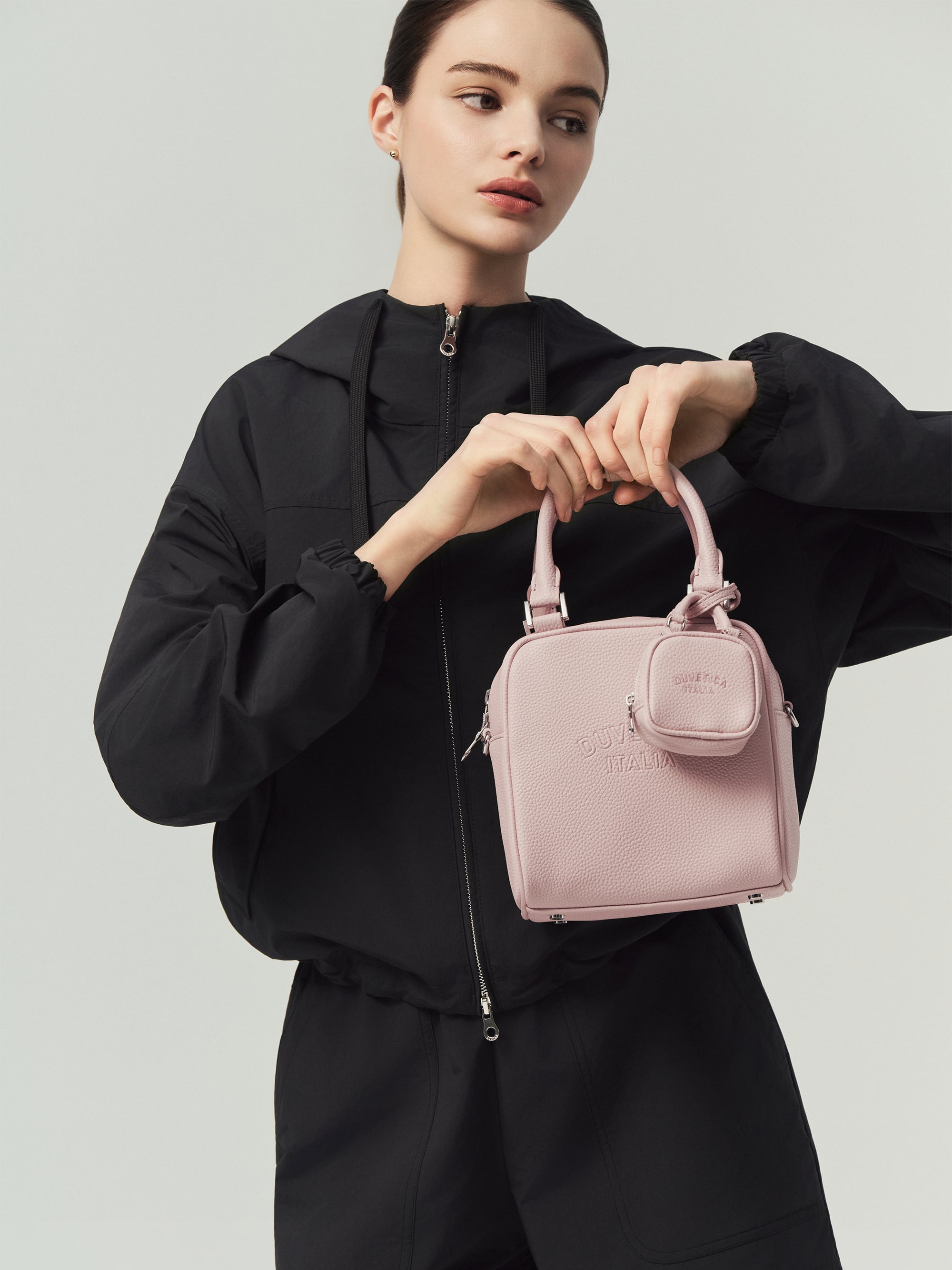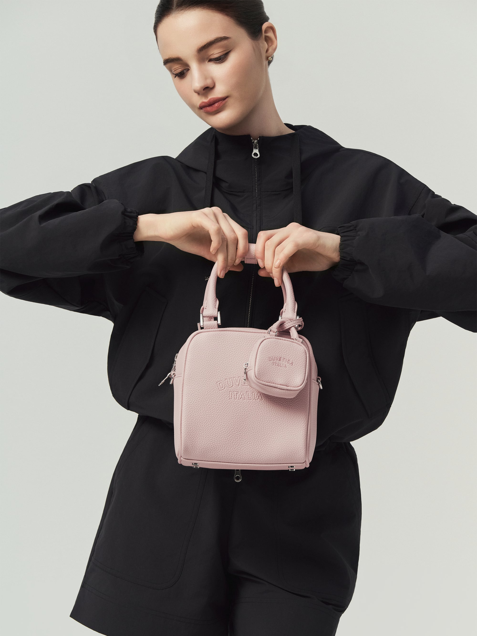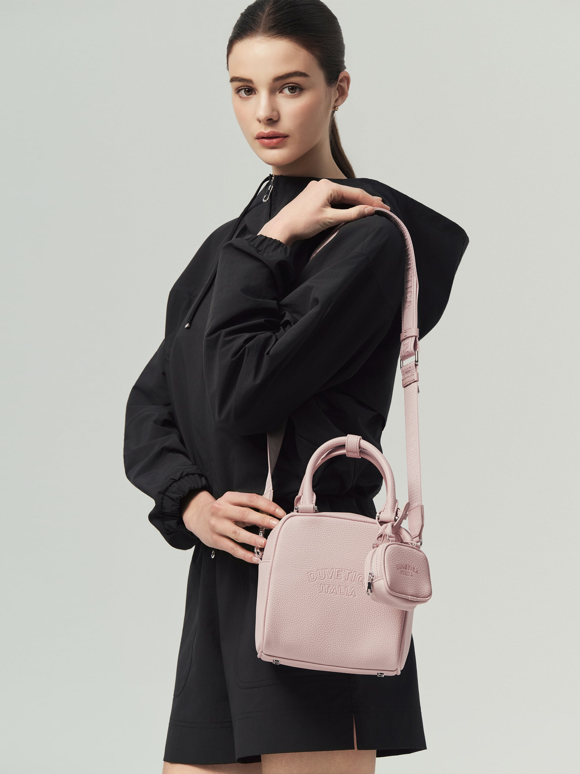 -토트 핸들 + 웨빙 스트랩 구성으로 토트, 숄더, 크로스로 연출 가능