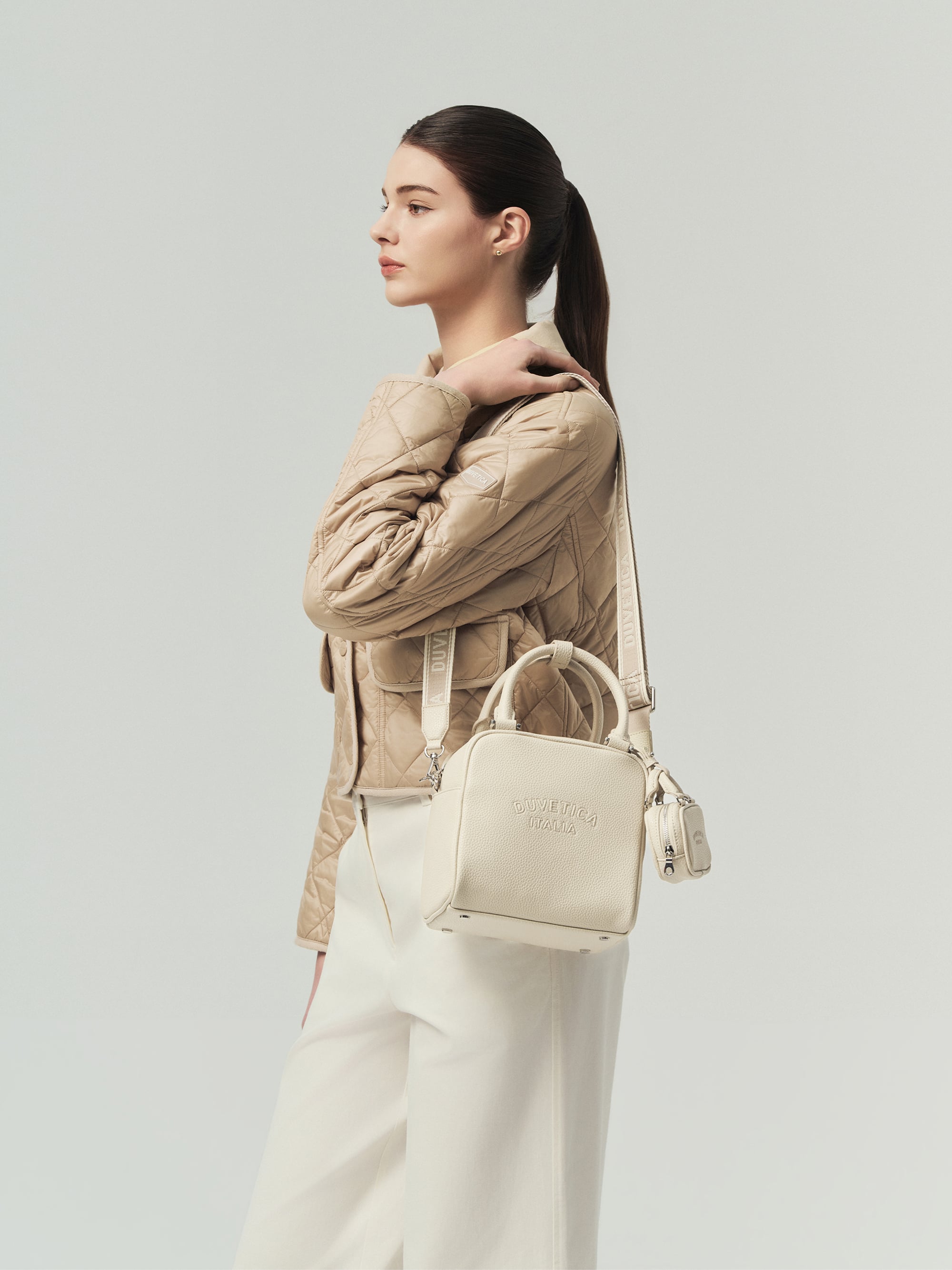 -토트 핸들 + 웨빙 스트랩 구성으로 토트, 숄더, 크로스로 연출 가능